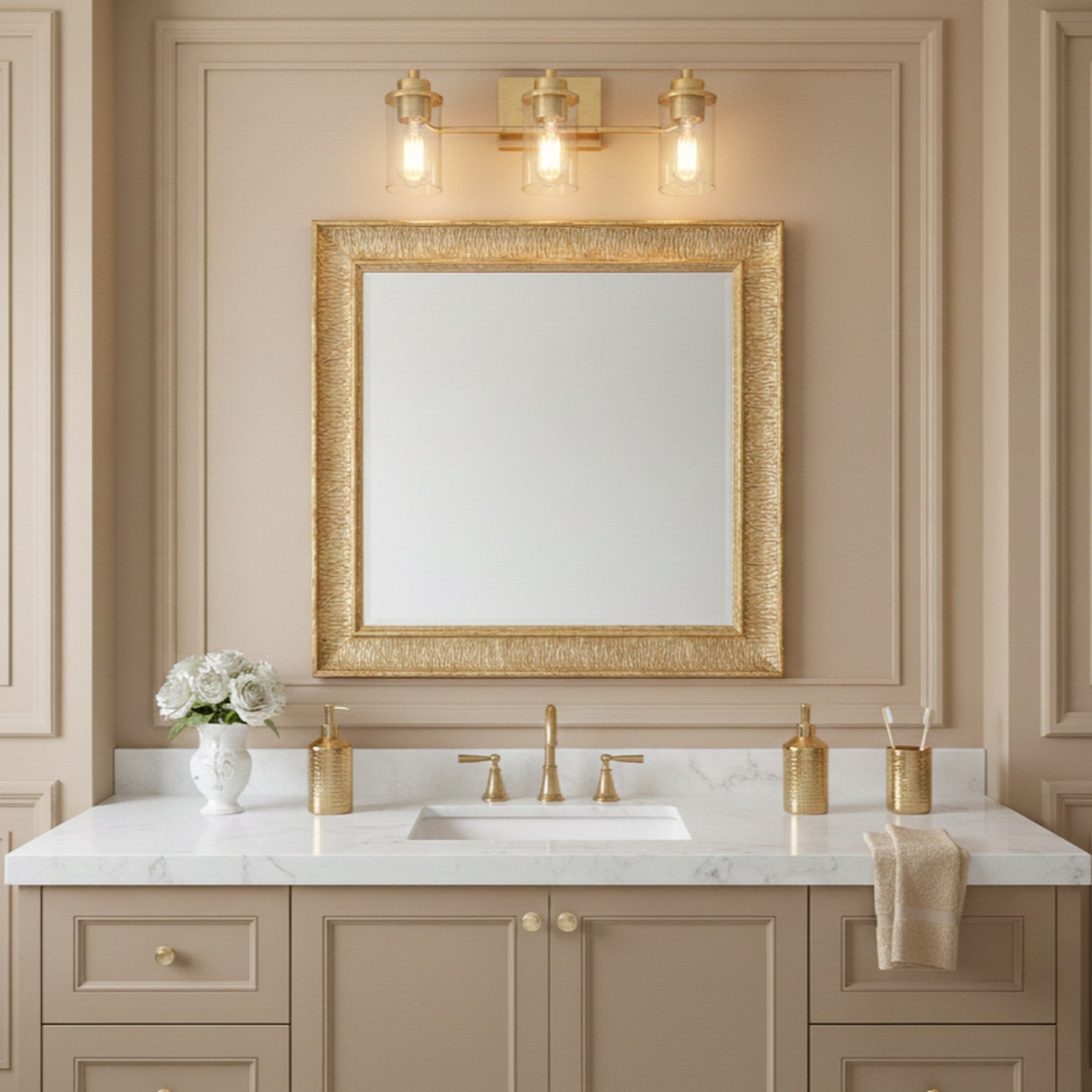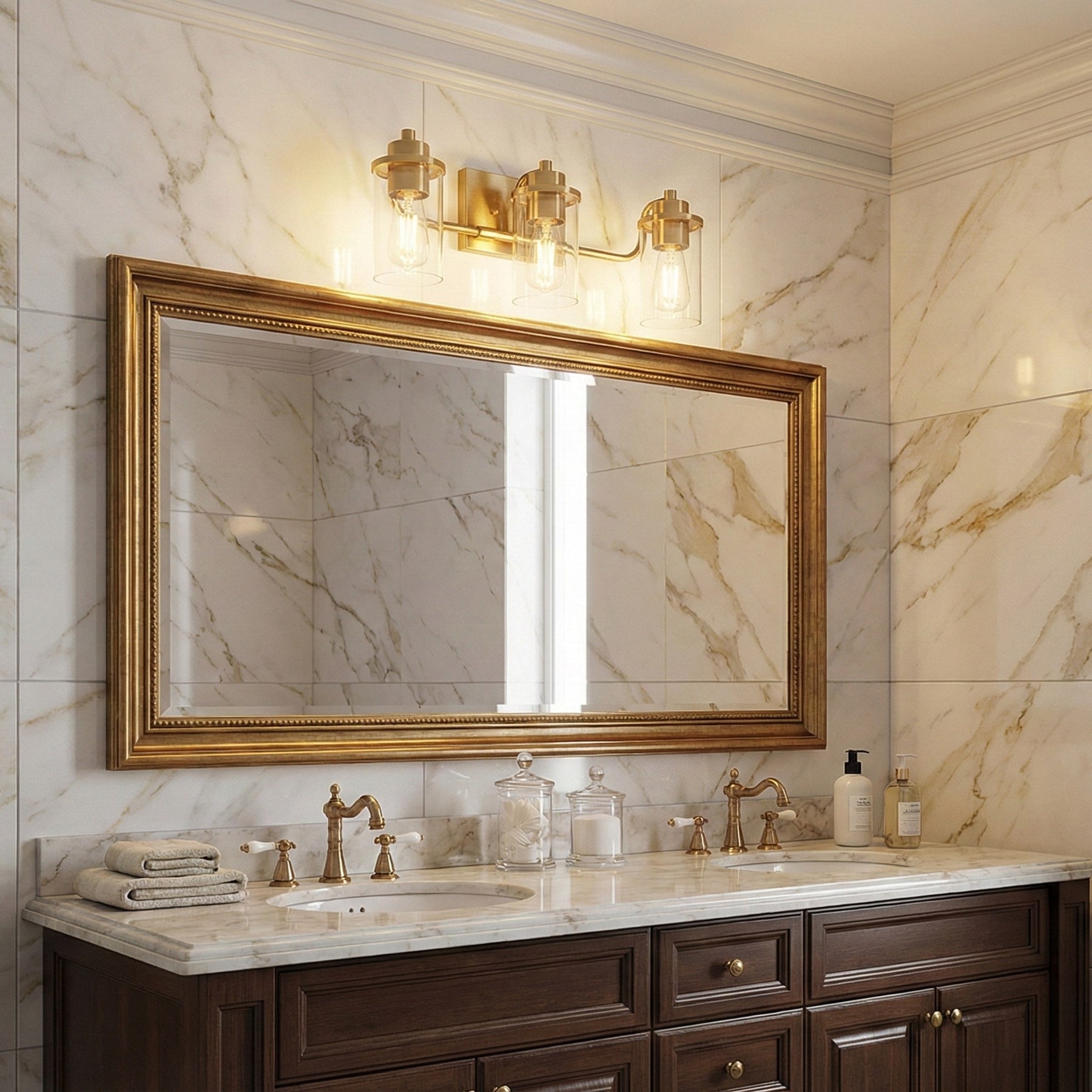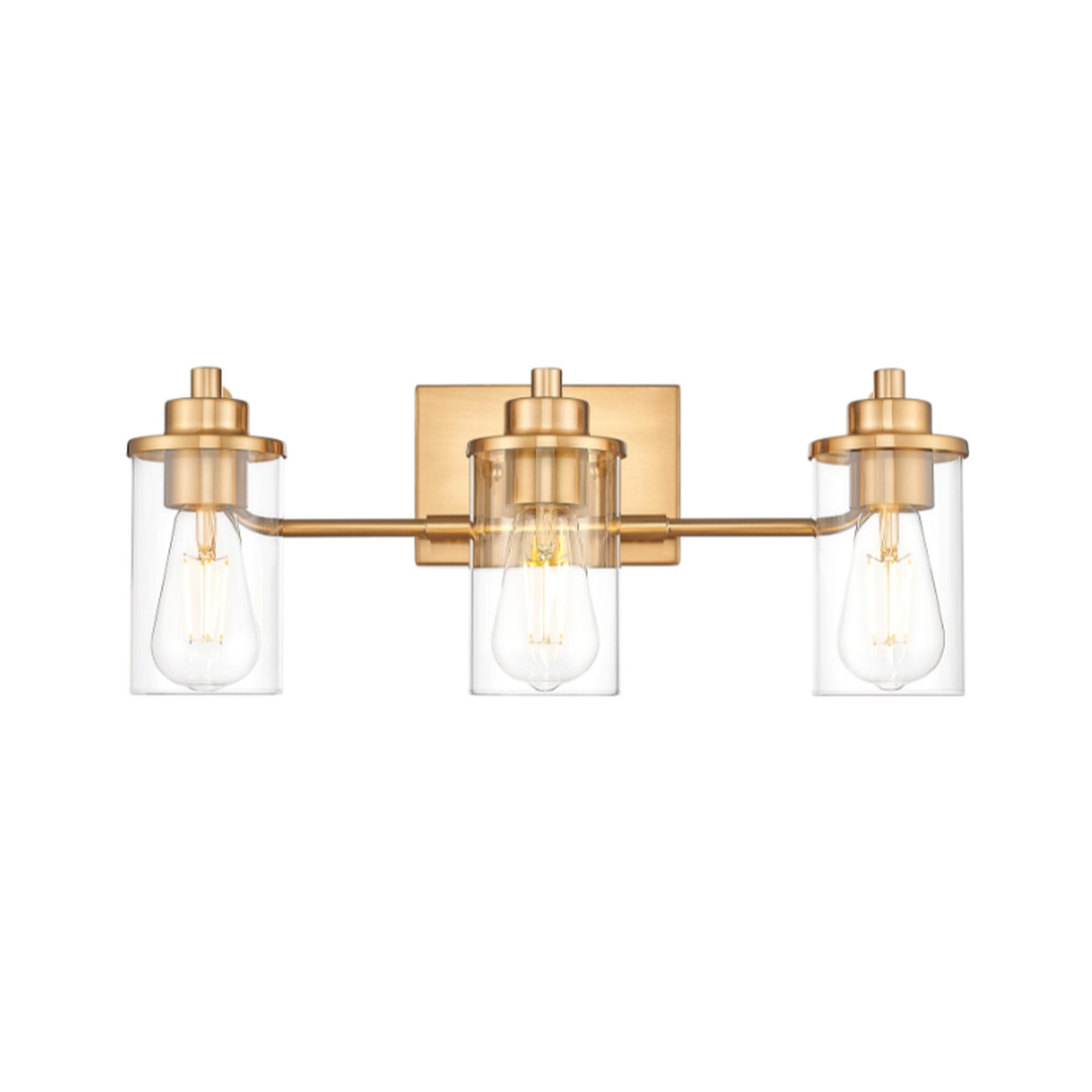 3 x E26 bulbs - Vanity Light - Black & Gold Metal / Clear Glass - L19.6" x H8" x E6.3"