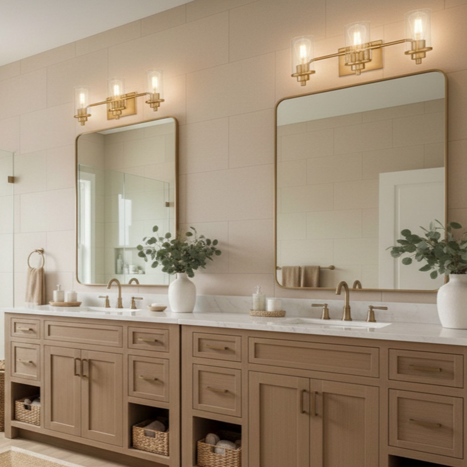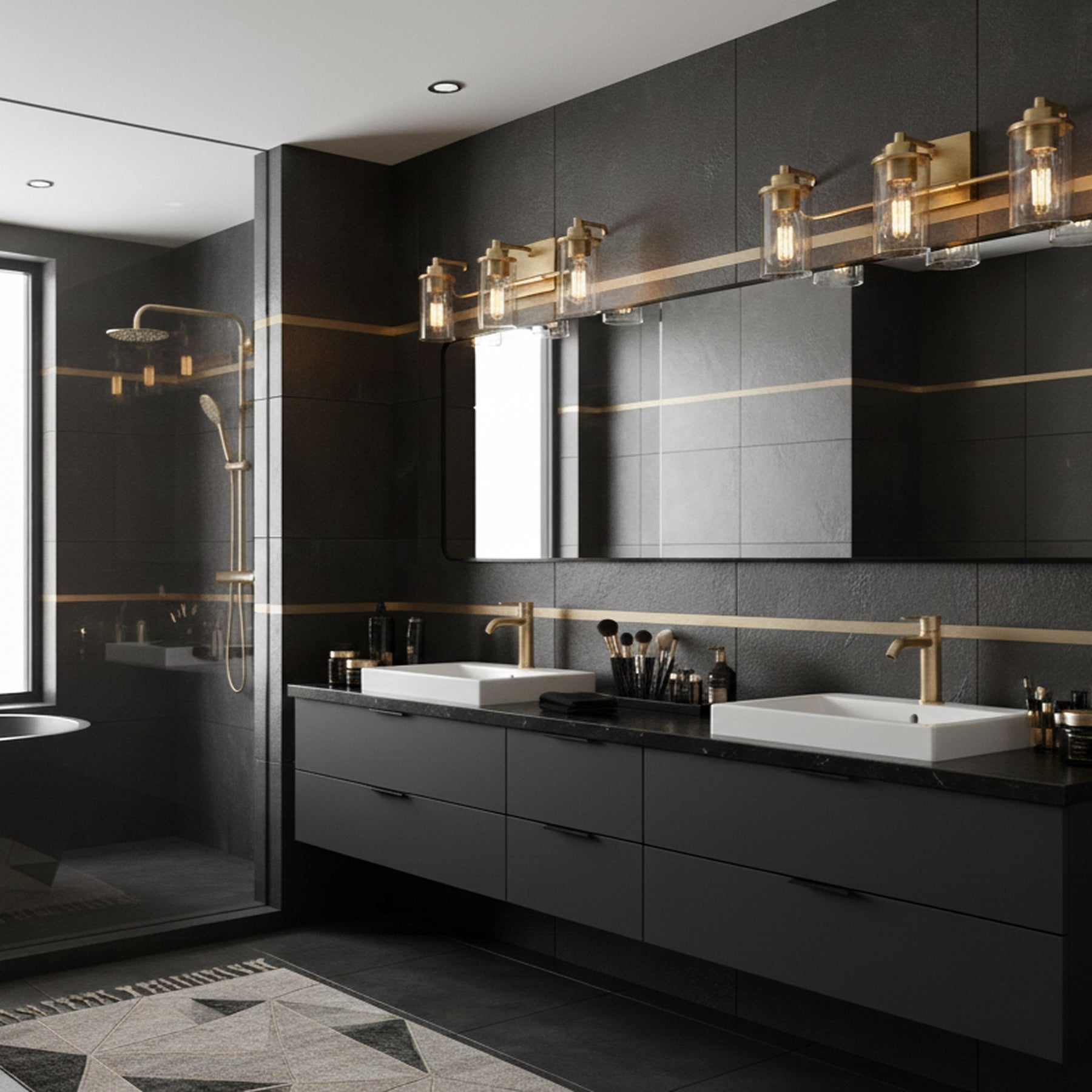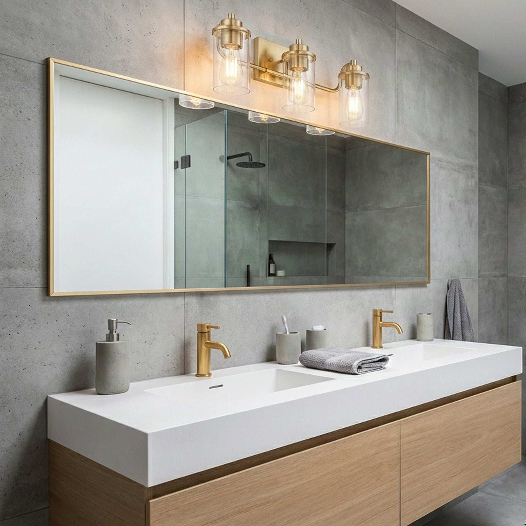3 x E26 bulbs - Vanity Light - Black & Gold Metal / Clear Glass - L19.6" x H8" x E6.3"