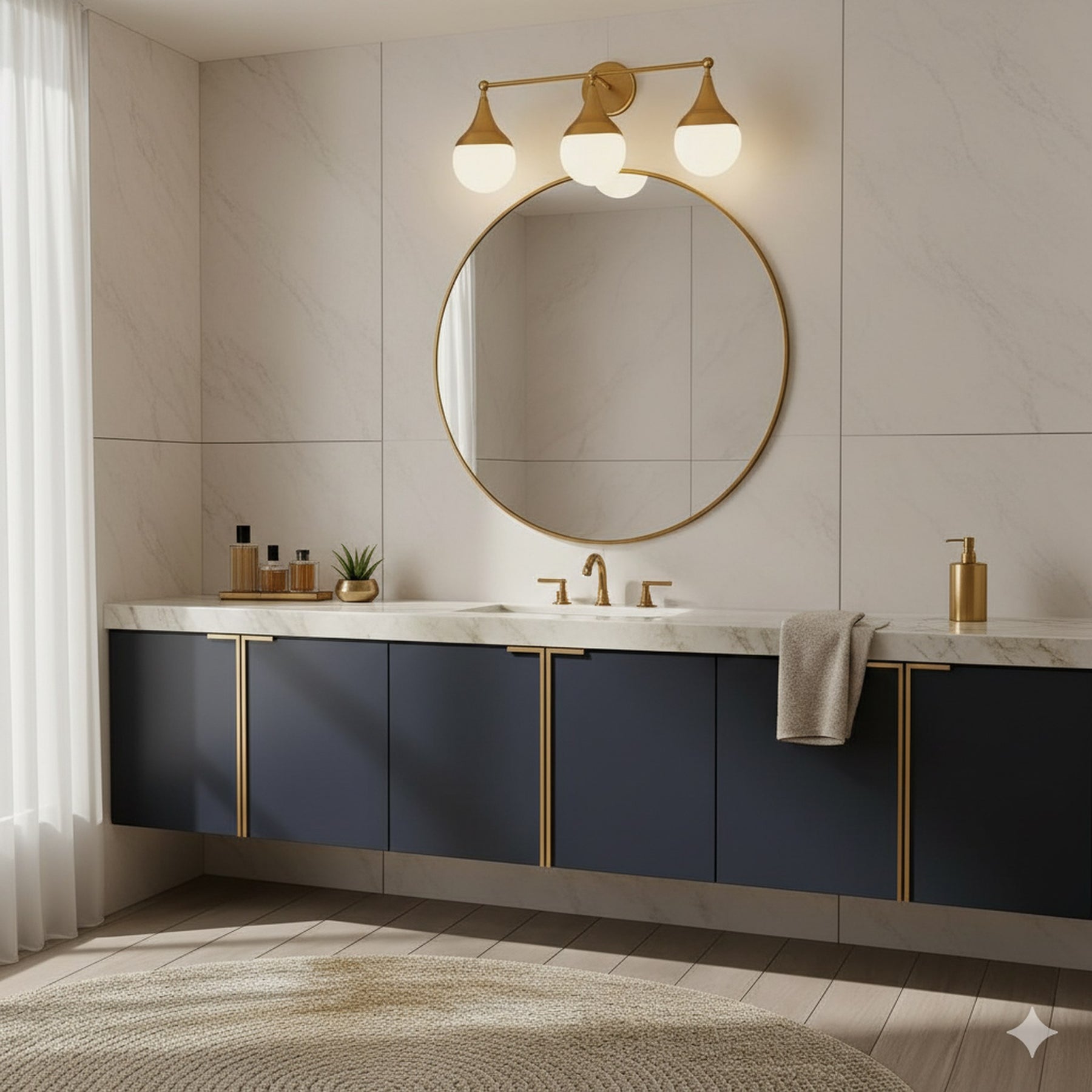 Vanity - Gold Plated/Frosted Glass - 22"L x 6.6"E x10.5"H - LED 14Watt 4000Lumens 3CCT (3K/4K/5K) Dimmable - Damp Area