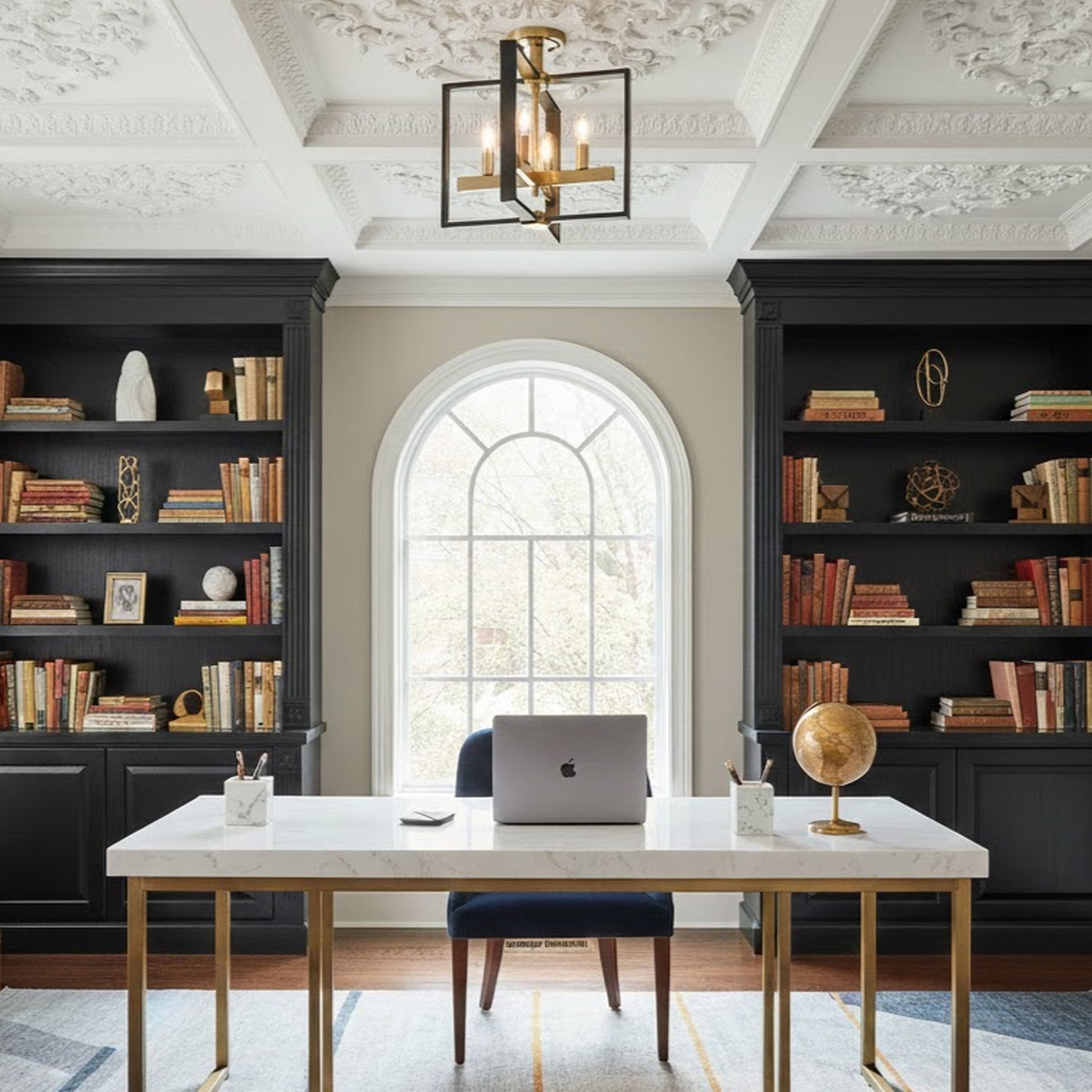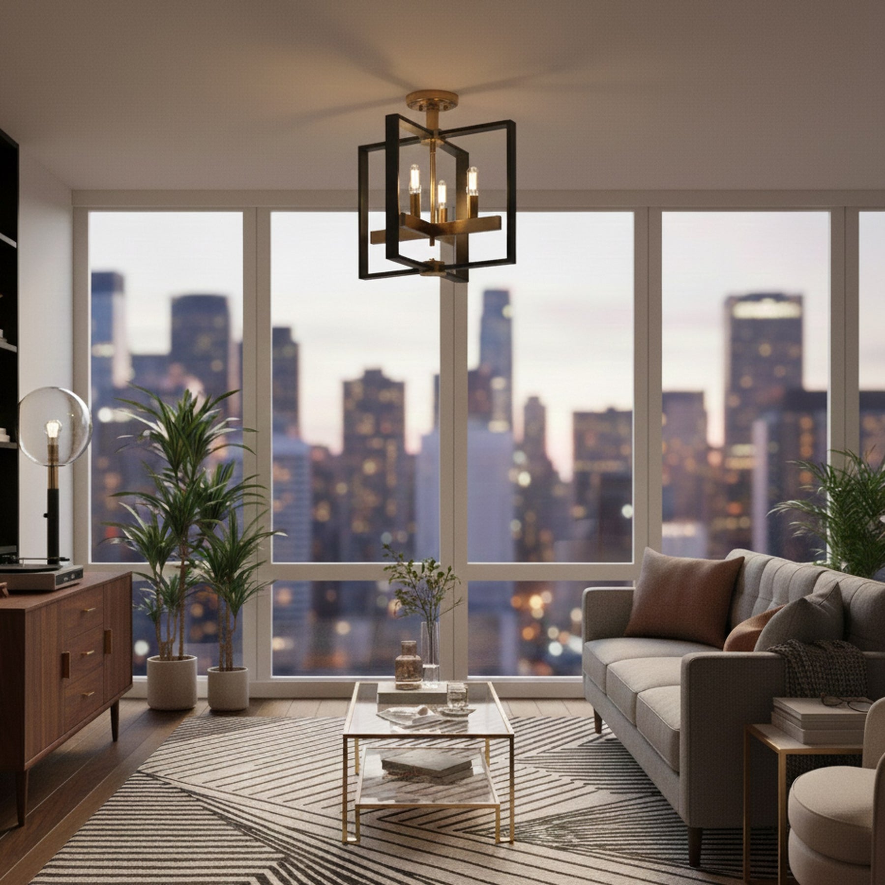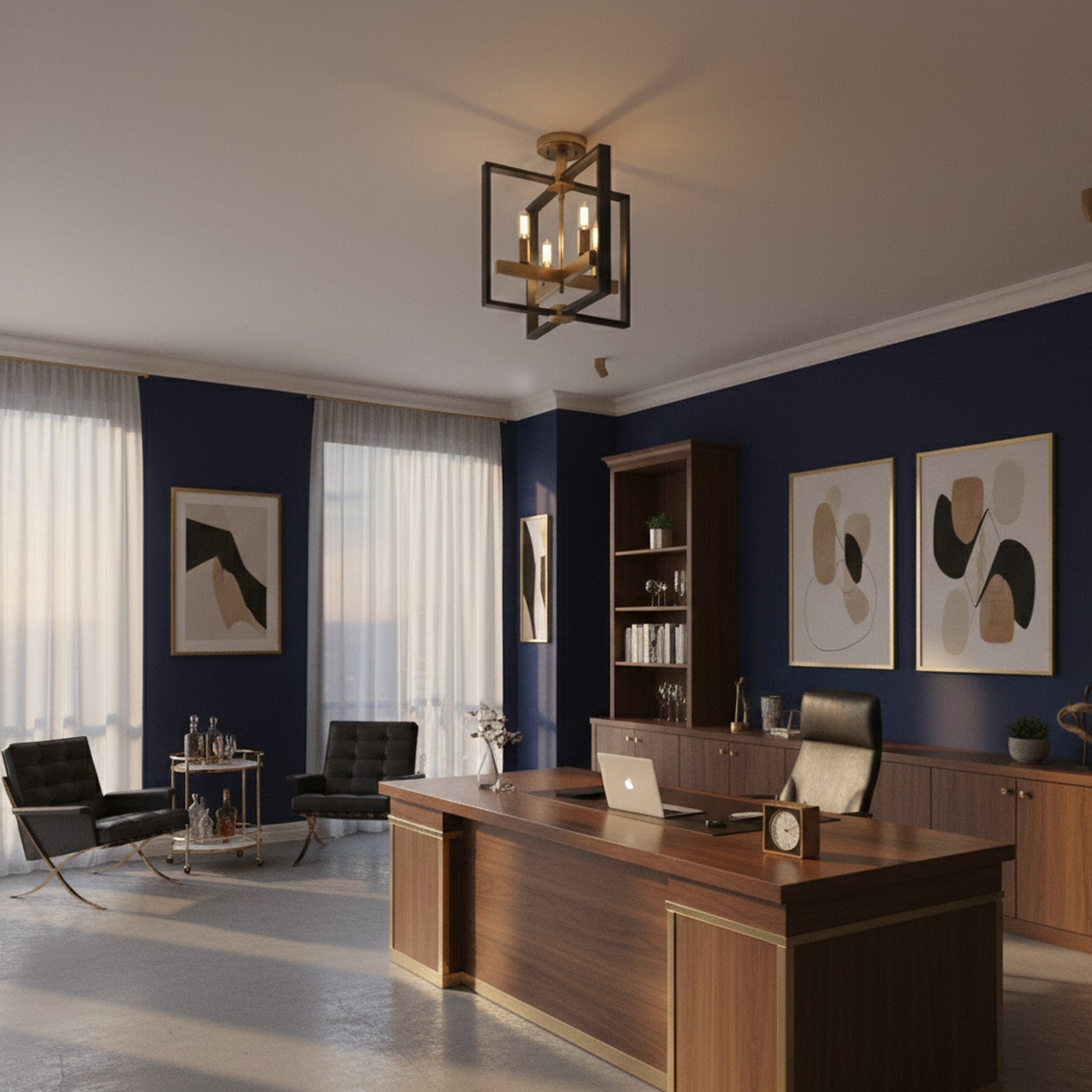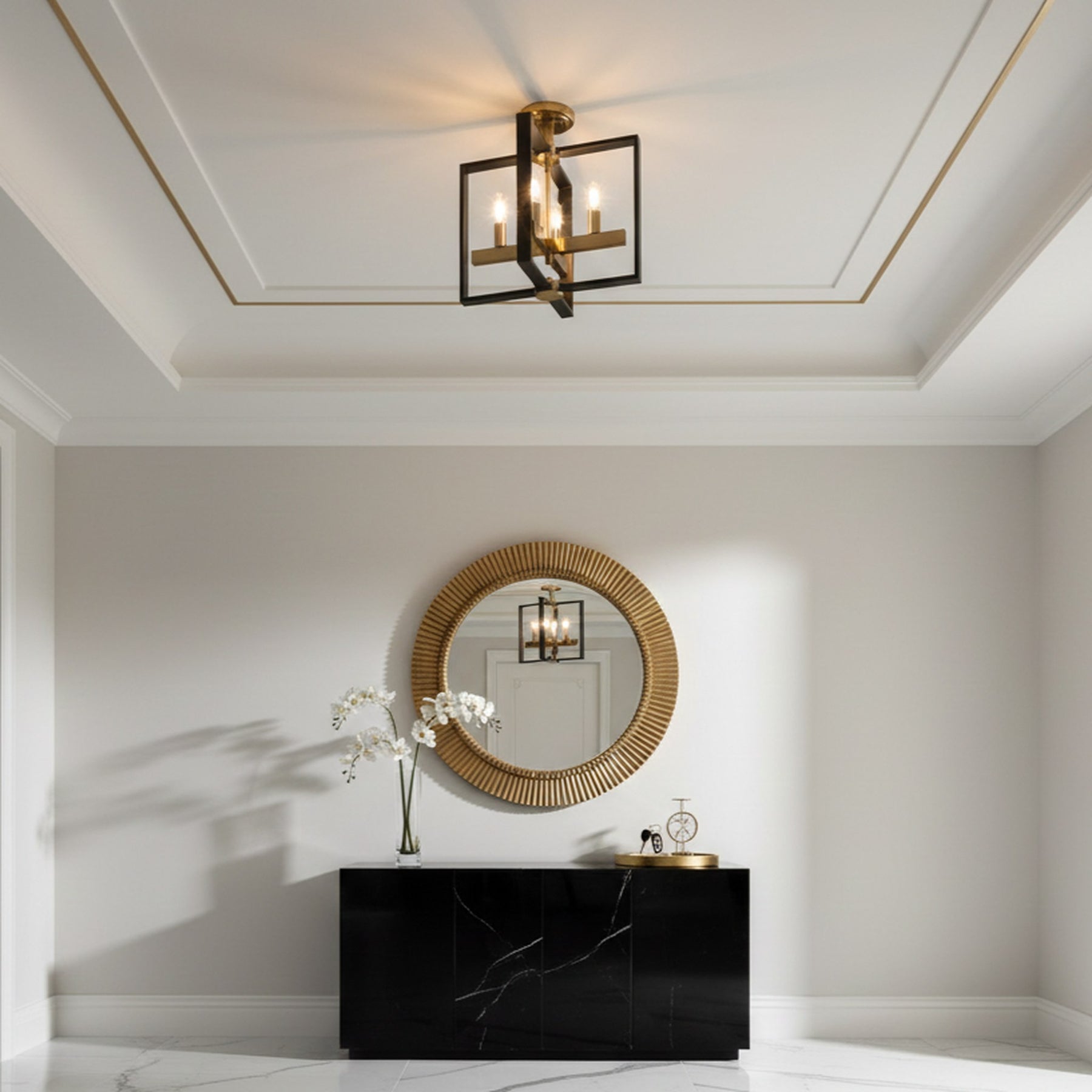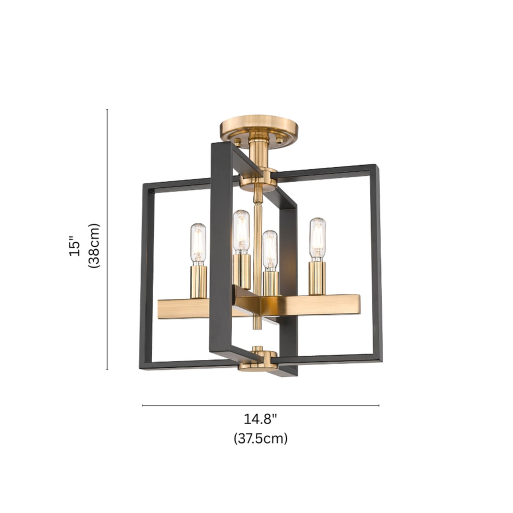 4 x E12 Bulbs - Semi- Flush Mount - Black / Gold - 14.8"L x 14.8"W x 15"H - 5.5Lbs