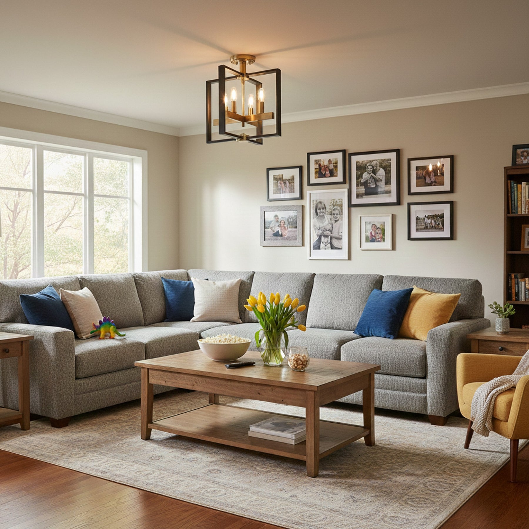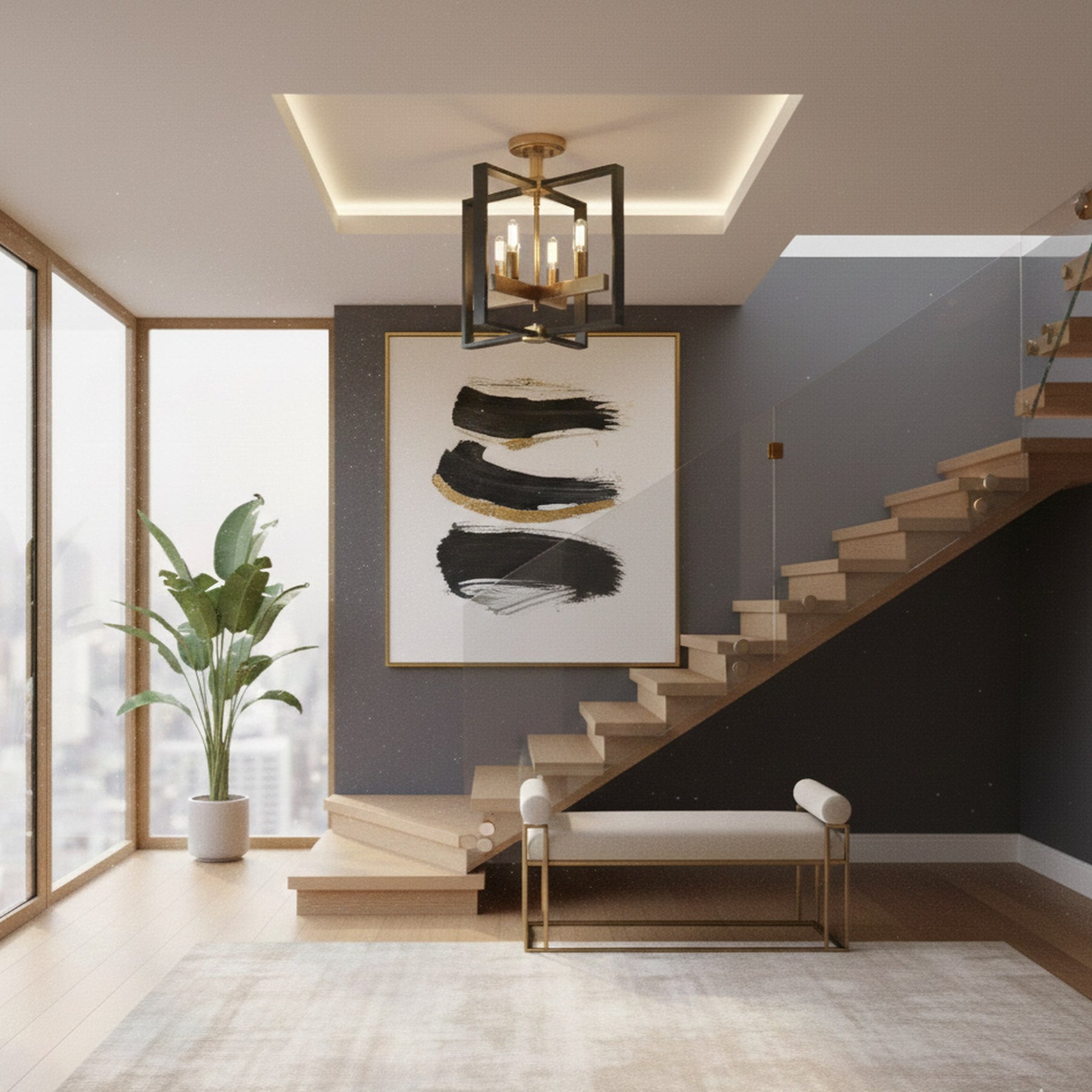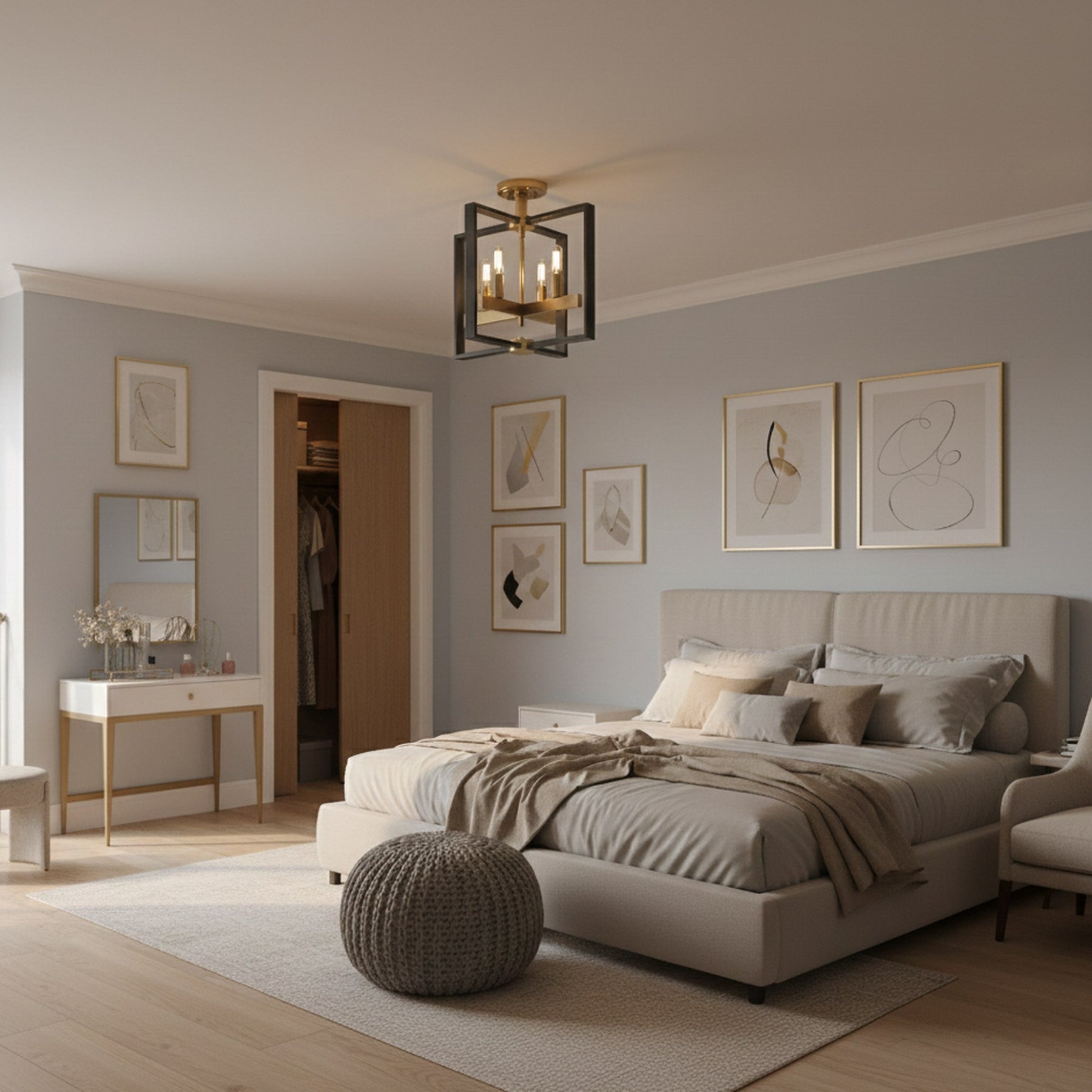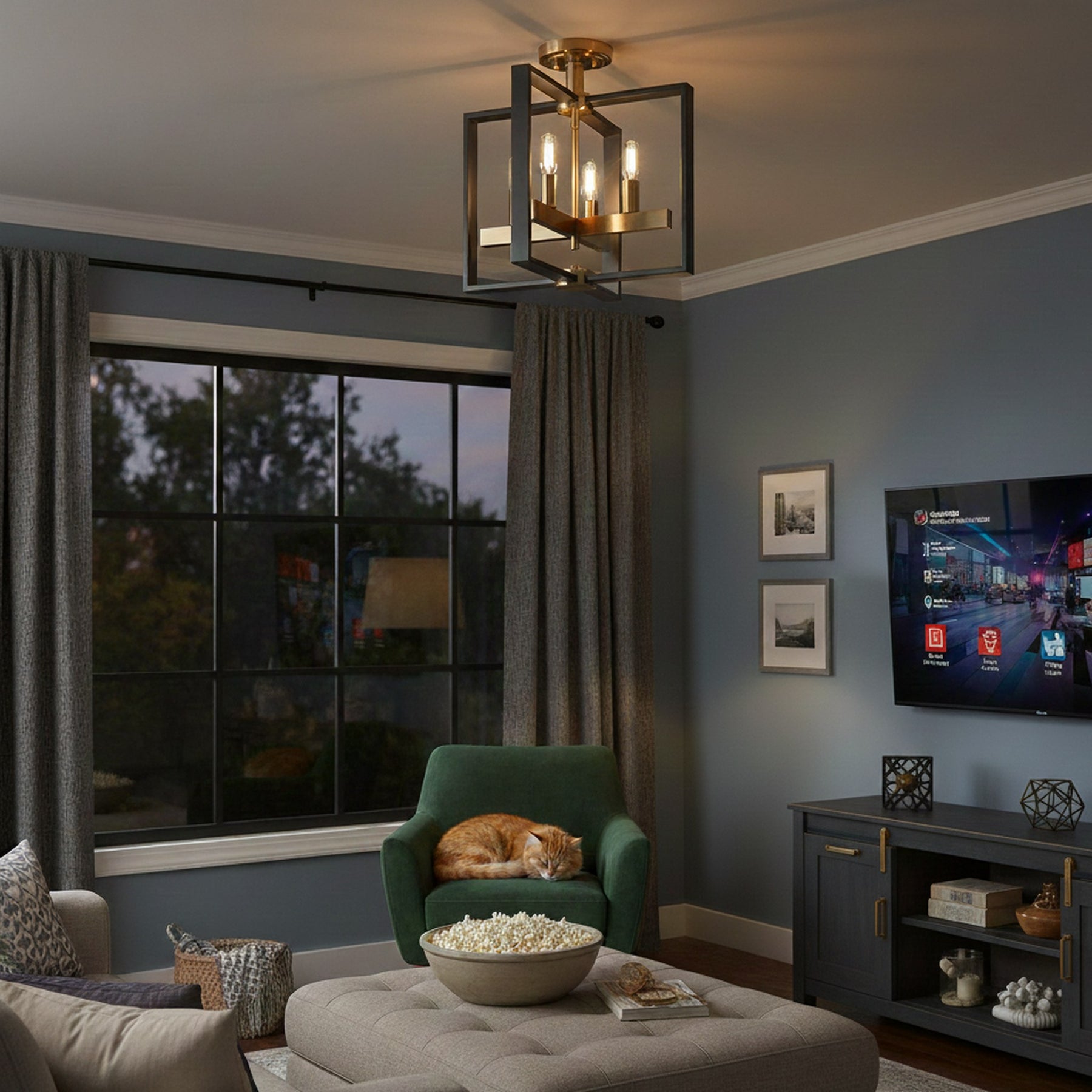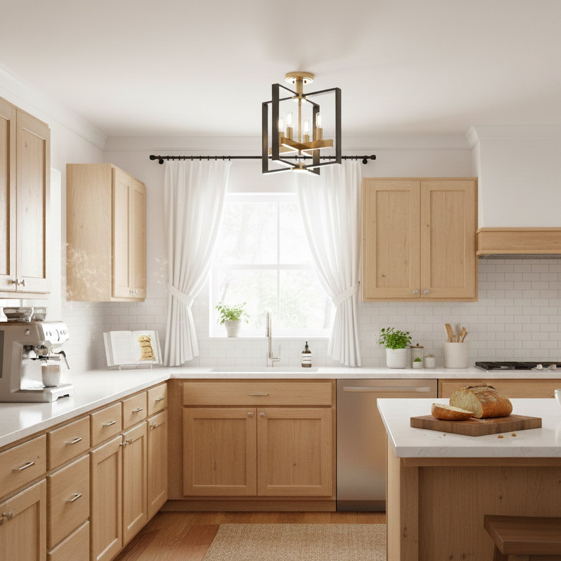 4 x E12 Bulbs - Semi- Flush Mount - Black / Gold - 14.8"L x 14.8"W x 15"H - 5.5Lbs