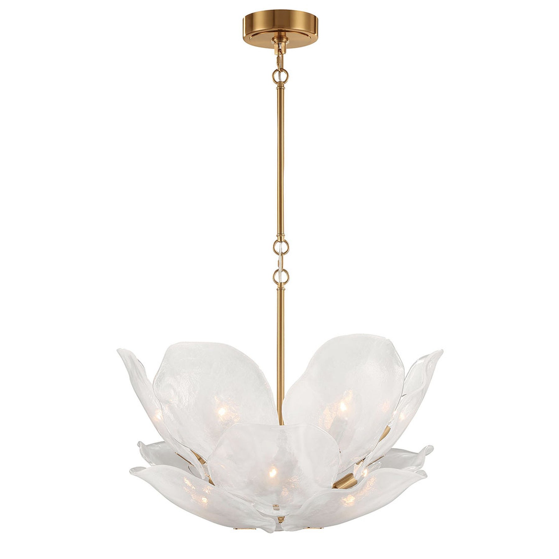 B10 - Corato, 12 Light Chandelier, Brushed Brass with Translucent White Glass - 25"H x 26"D (Overall Height: 110.5") - 42 lbs
