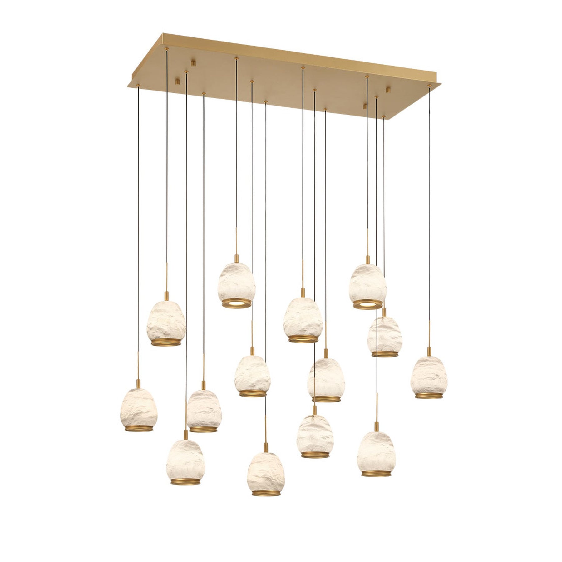 LED Integrated - 3000K - 5600 Lumens - Lucidata, 14 Light Rectangular LED Chandelier, Painted Antique Brass - 41.25"L x 17.75"W x 10.75"H (Overall Height: 154.5") - 67.6 lbs