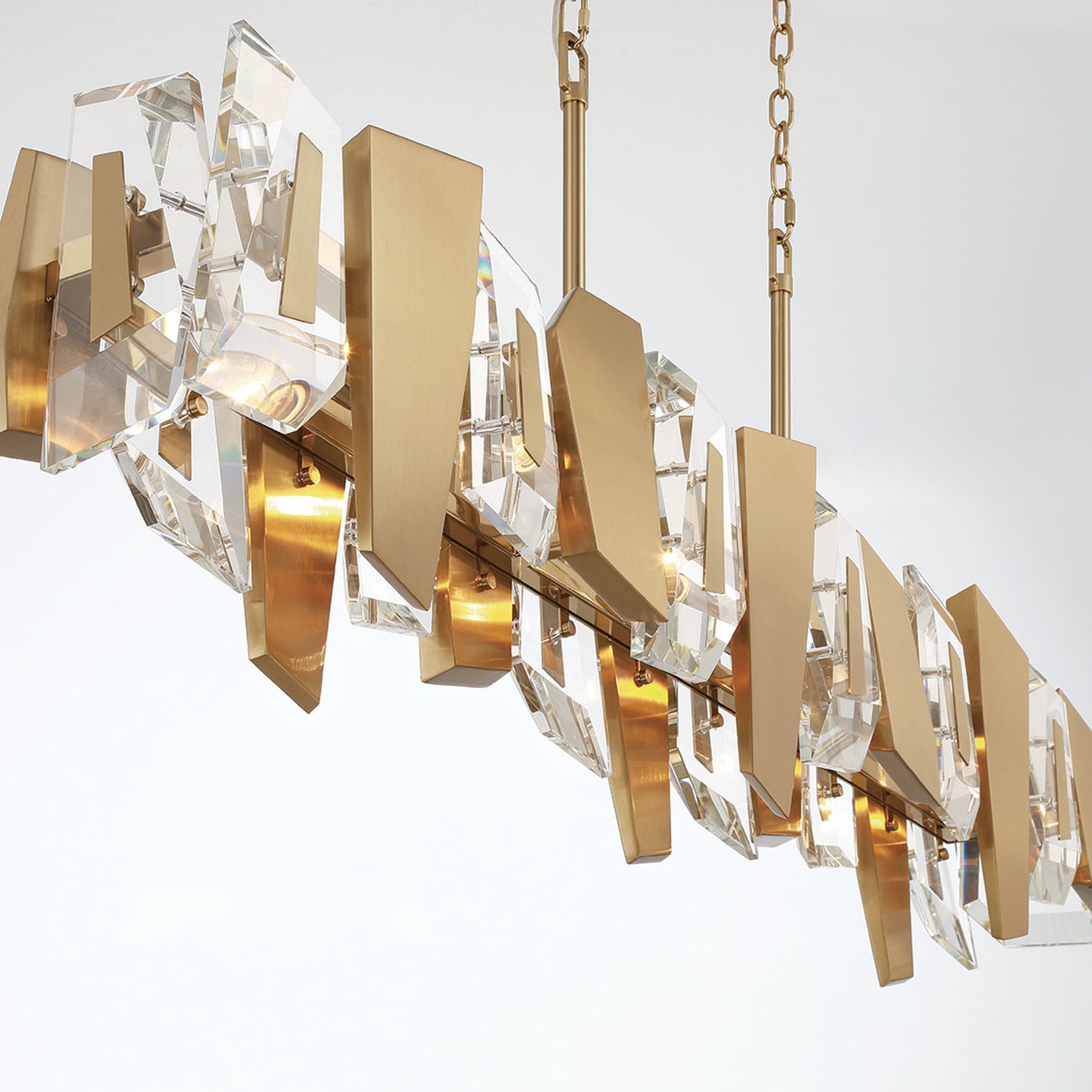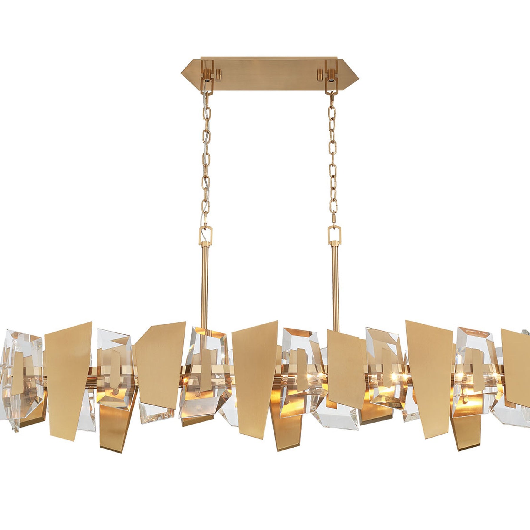 B10 - Castellana, 6 Light Linear Chandelier, Brushed Brass, Clear Crystal - 50.5"L x 8"W x 22"H (Overall Height: 96.5") - 46 lbs.