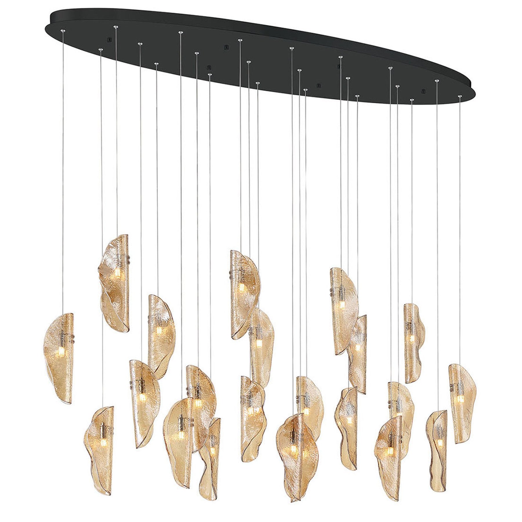 G4 LED - 3000K - 2400 Lumens - Sorrento, 22 Light Oval LED Chandelier, Amber, Black Canopy - 60"L x 16"W x 11"H (Overall Height: 156.5") - 76.9 lbs.