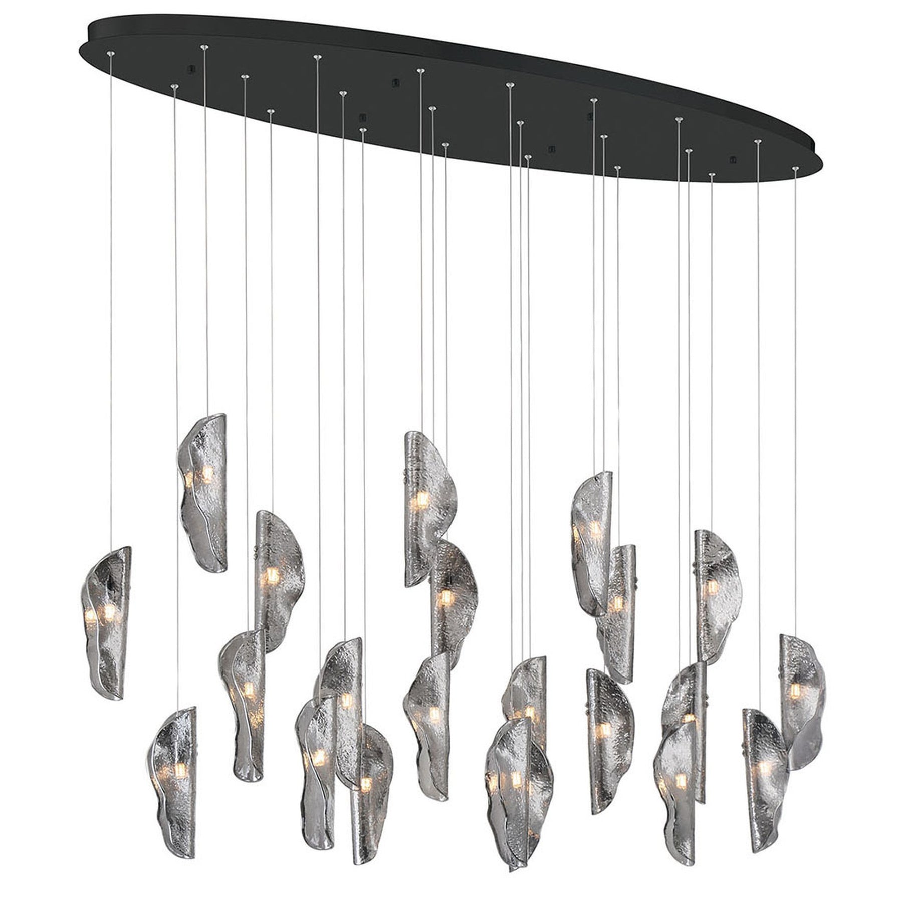 G4 LED - 3000K - 2400 Lumens - Sorrento, 22 Light Oval LED Chandelier, Smoke, Black Canopy - 60"L x 16"W x 11"H (Overall Height: 156.5") - 76.9 lbs.