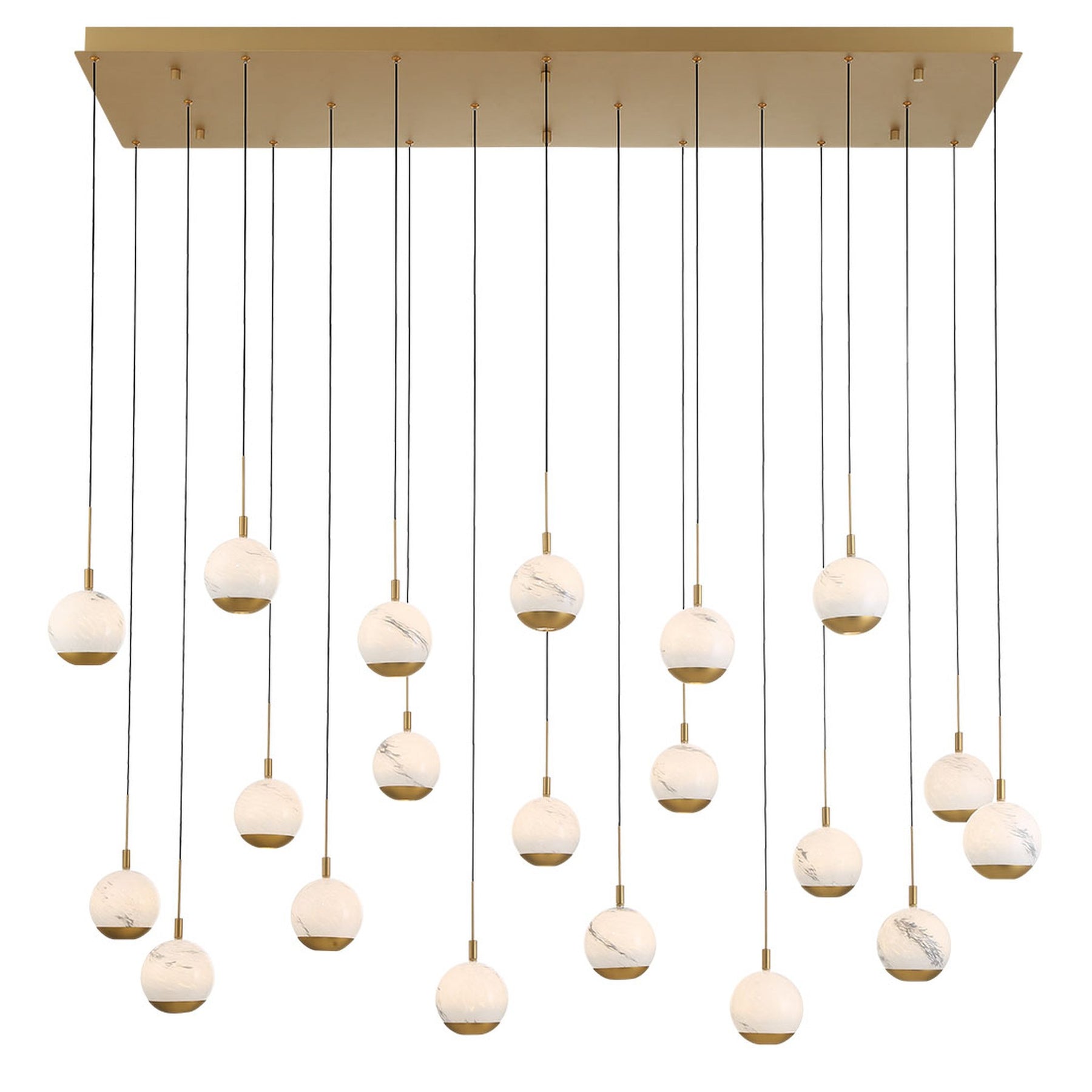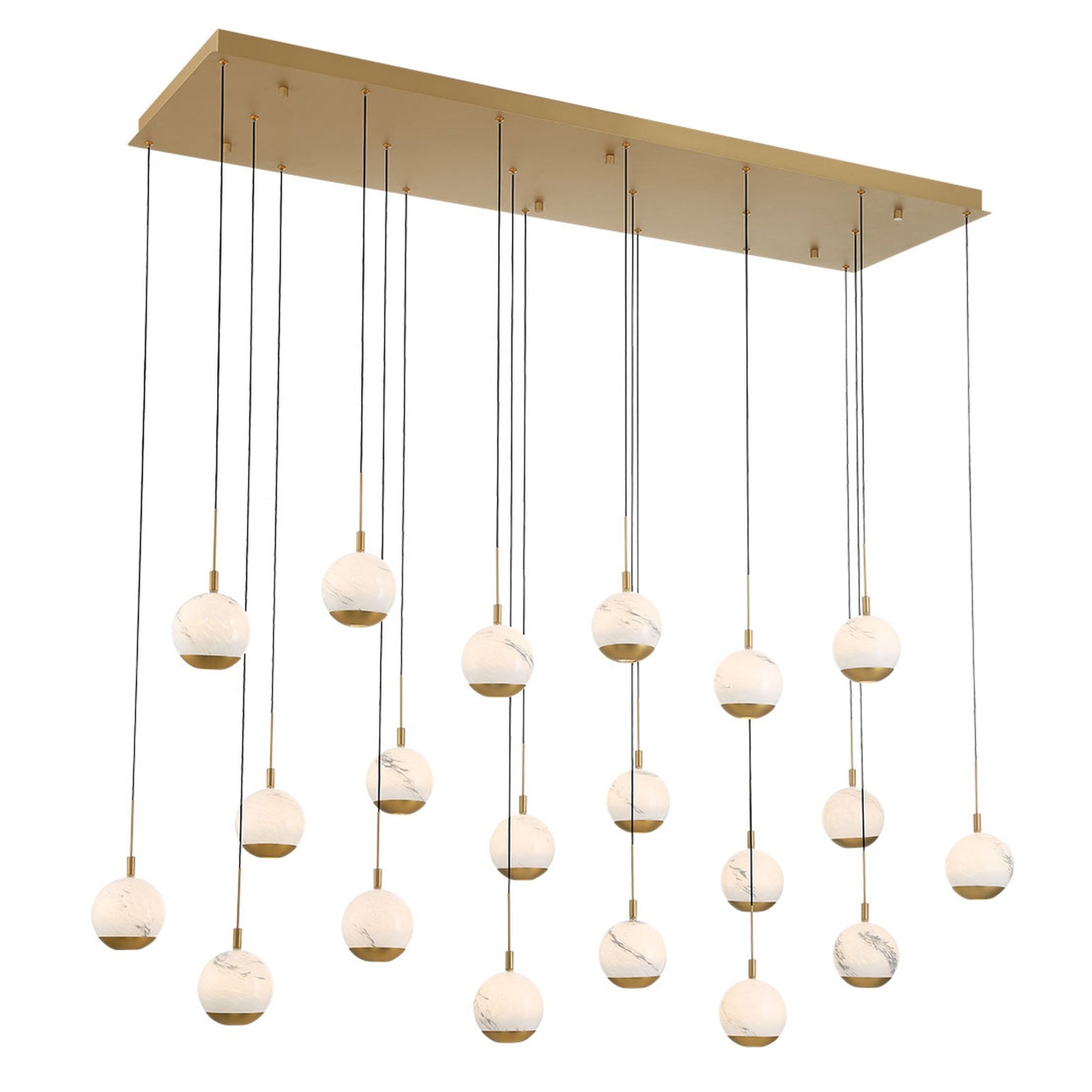 LED Integrated - 3000K - 7500 Lumens - Baveno, 20 Light Rectangular LED Chandelier, Painted Antique Brass - 59"L x 17.75"W x 9.75"H (Overall Height: 155.75") - 59.4 lbs.