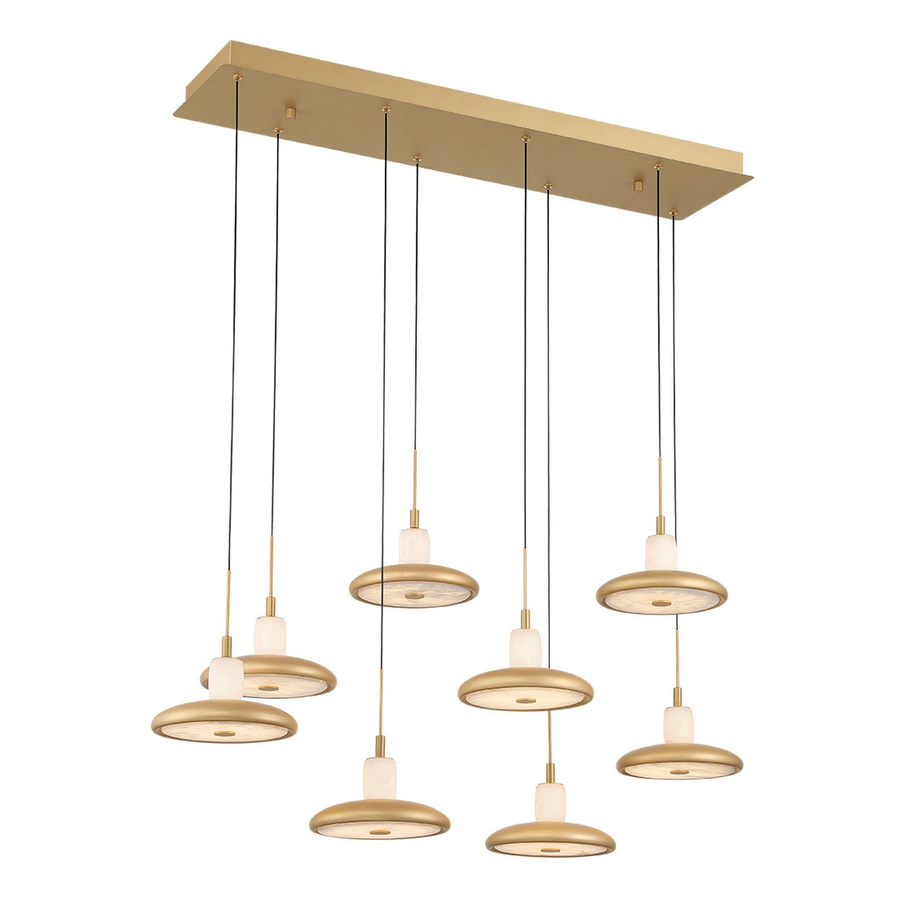 LED Integrated - 3000K - 3200 Lumens - Mantova, 8 Light Rectangular LED Chandelier, Painted Antique Brass - 35.5"L x 9"W x 9.25"H (Overall Height: 155") - 30.1 lbs.