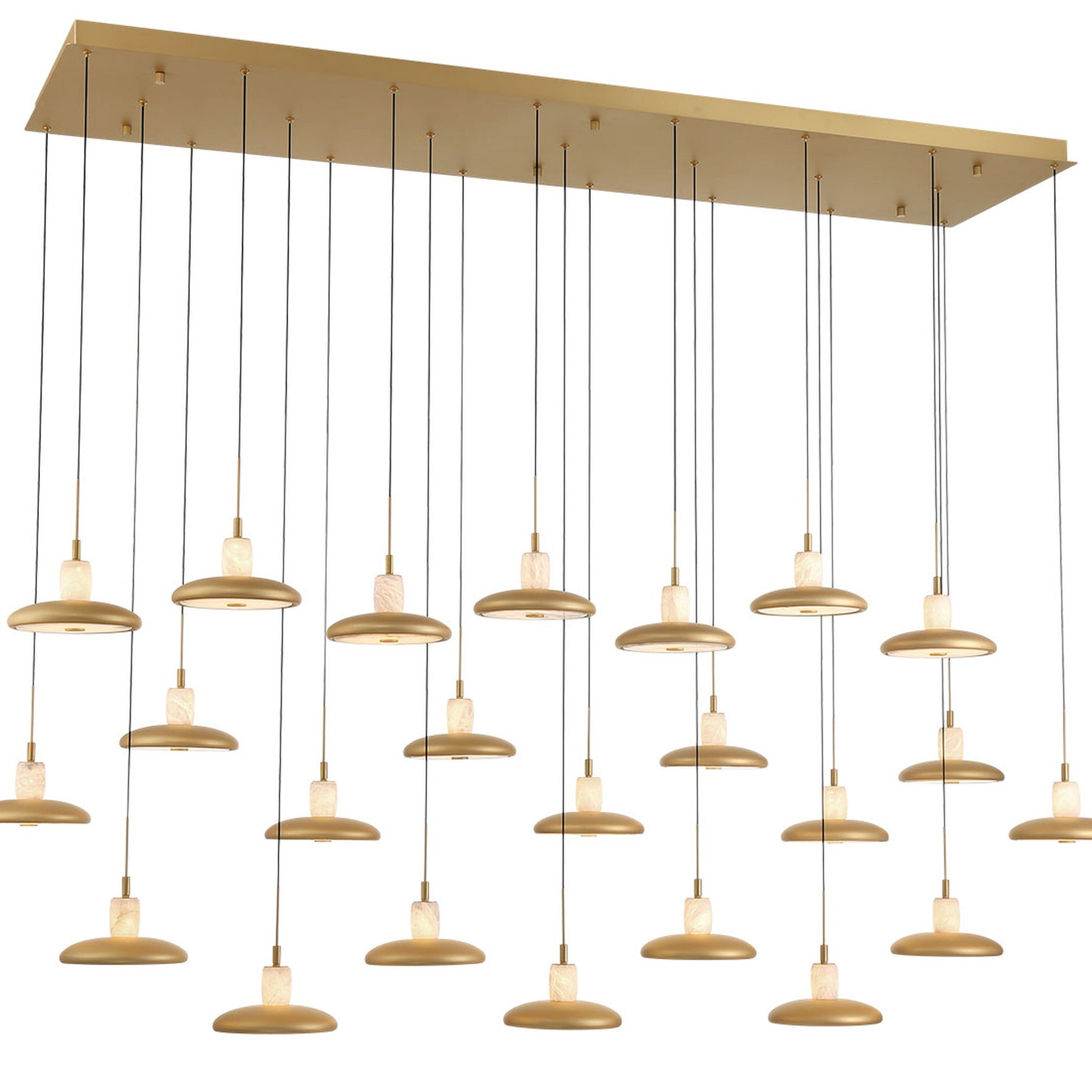 LED Integrated - 3000K - 9200 Lumens - Mantova, 23 Light Rectangular LED Chandelier, Painted Antique Brass - 71.75"L x 17.75"W x 9.25"H (Overall Height: 155") - 95.2 lbs.