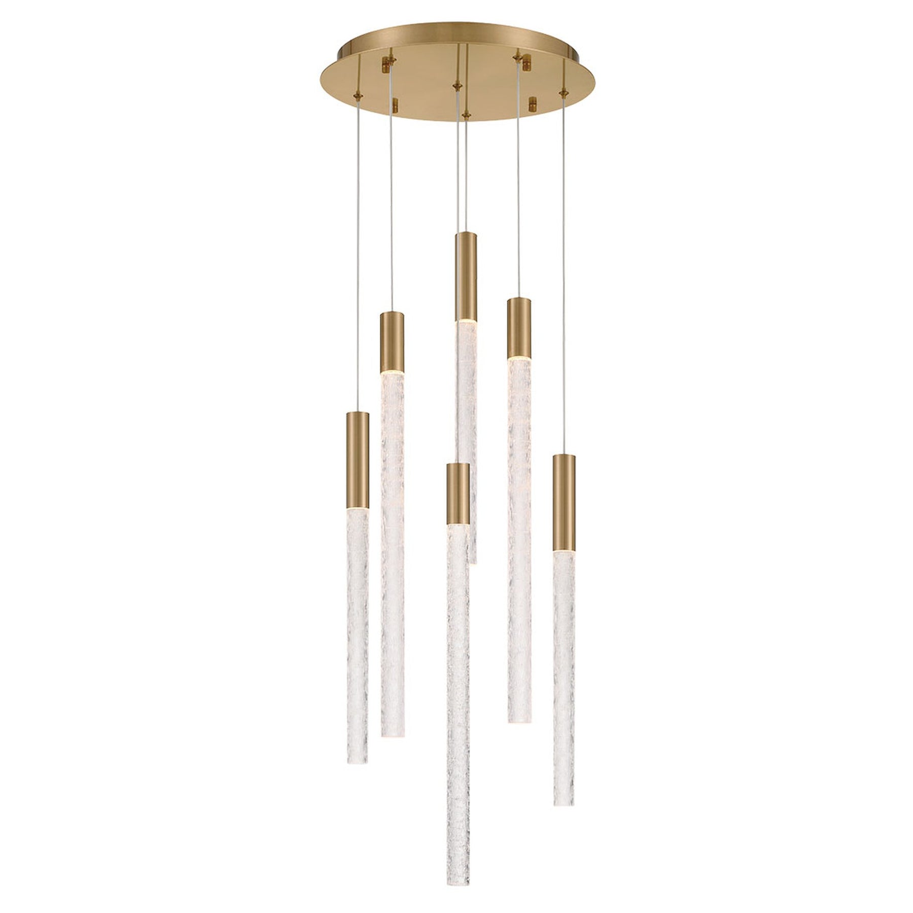 LED Integrated - 3000K - 700 Lumens - Gravina, 6 Light LED Chandelier, Brushed Brass, Clear Crystal - 23.25"H x 16"D (Overall Height: 121") - 30 lbs.