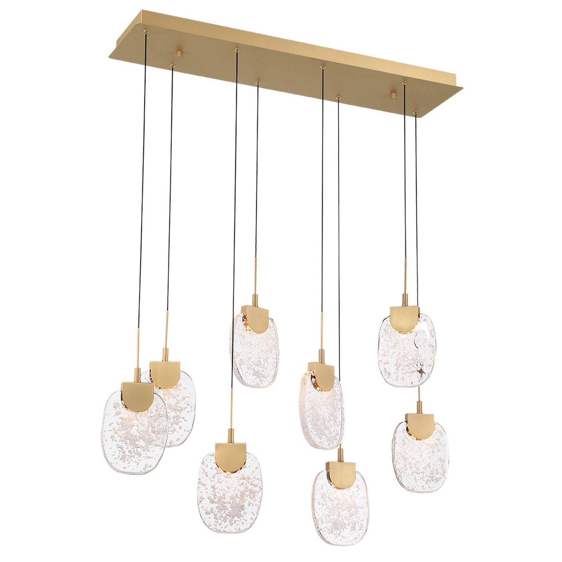 LED Integrated - 3000K - 2400 Lumens - Castelo, 8 Light Rectangular LED Chandelier, Painted Antique Brass - 38.5"L x 9"W x 13.25"H (Overall Height: 154.5") - 30 lbs.