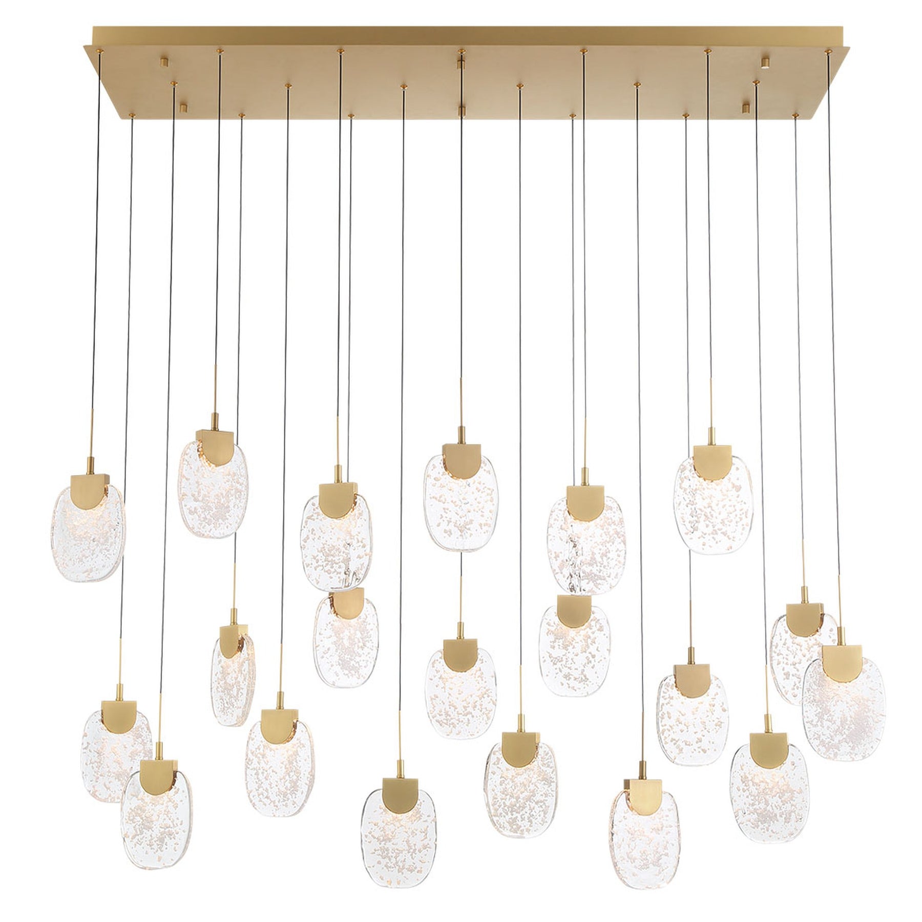 LED Integrated - 3000K - 6000 Lumens - Castelo, 20 Light Rectangular LED Pendant, Painted Antique Brass - 62.25"L x 17.75"W x 13.25"H (Overall Height: 154.5") - 83 lbs.