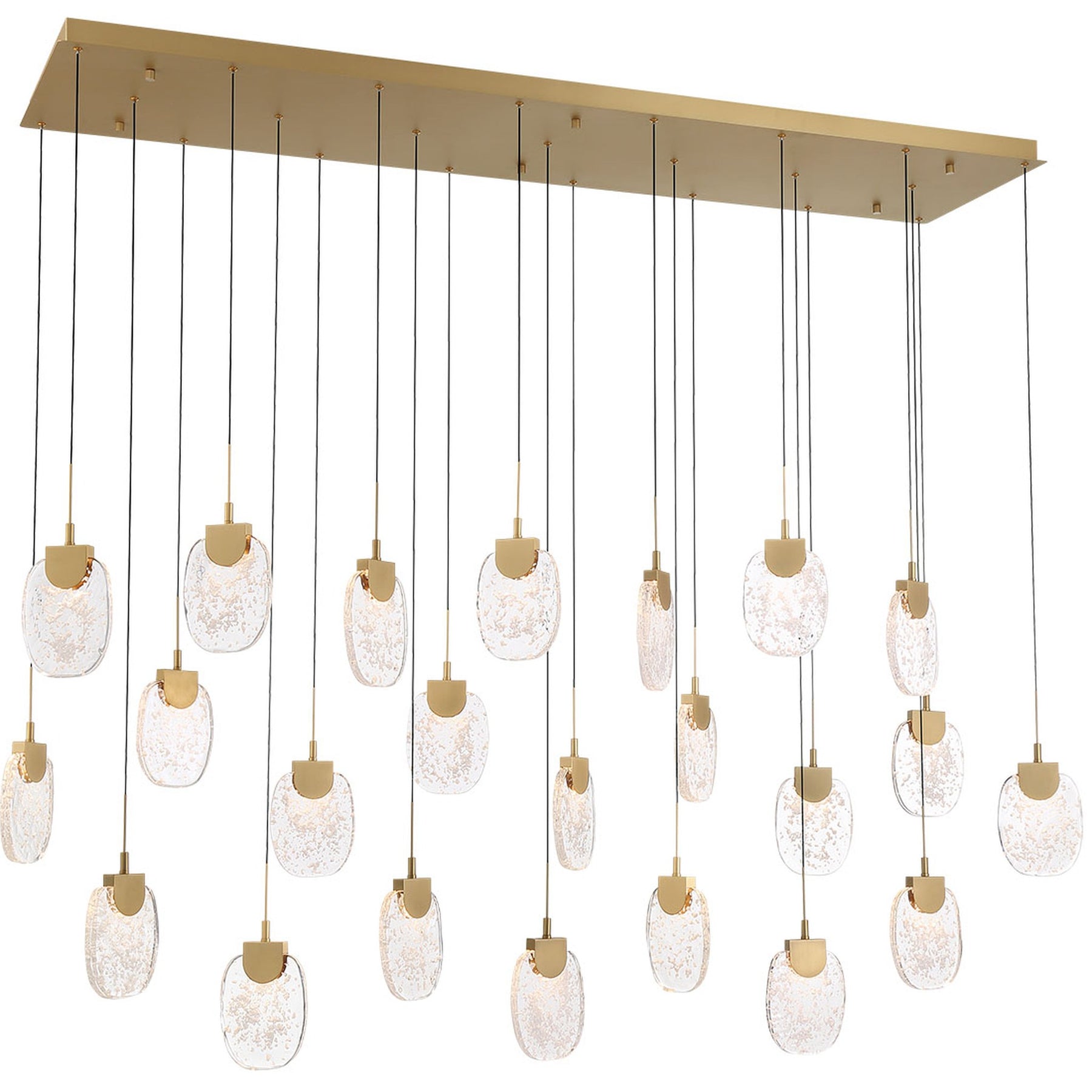 LED Integrated - 3000K - 6900 Lumens - Castelo, 23 Light Rectangular LED Chandelier, Painted Antique Brass - 75"L x 17.75"W x 13.25"H (Overall Height: 154.5") - 96 lbs.