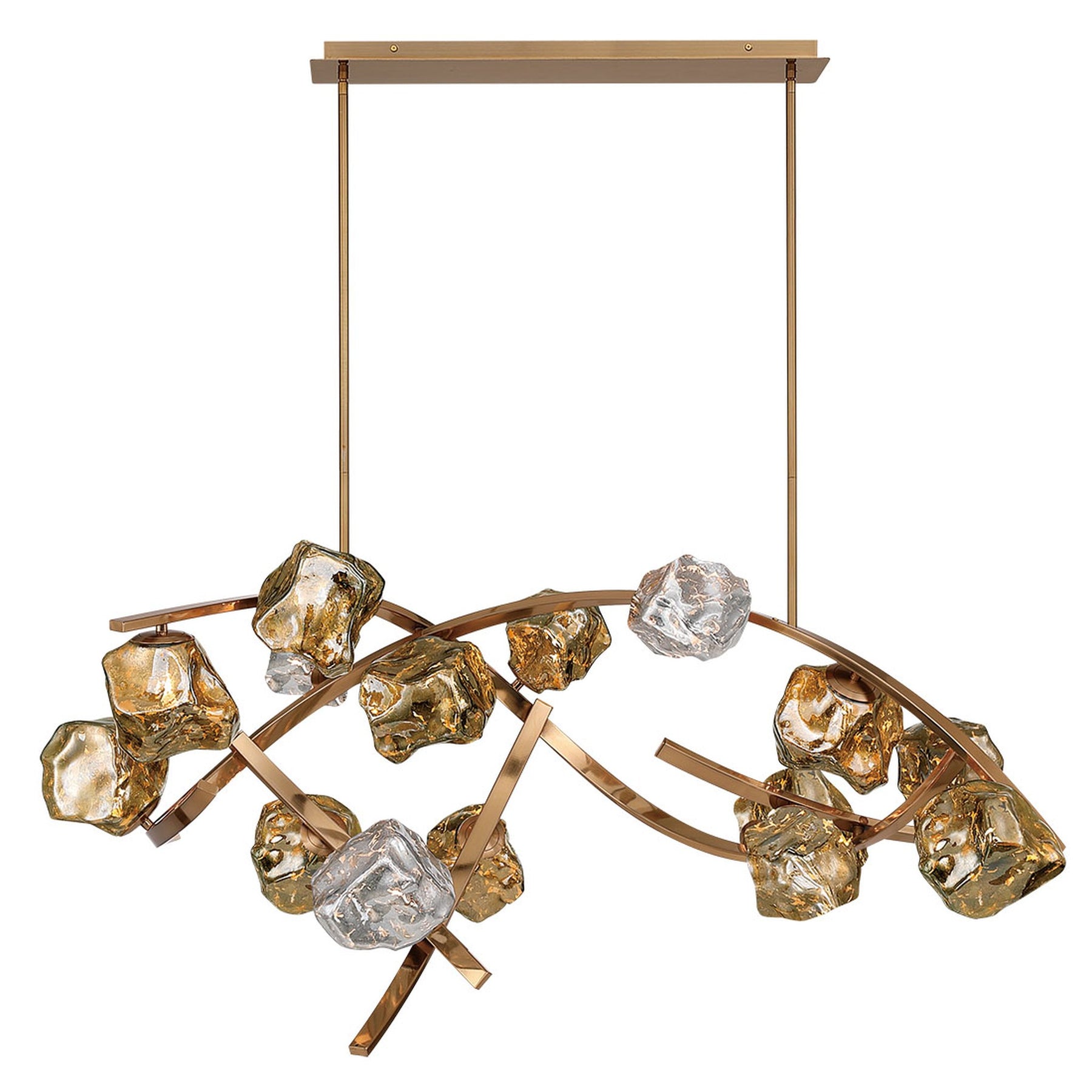 G9 LED - 3000K - 1500 Lumens - Sorano, 15 Light LED Chandelier, Brushed Brass - 48.5"L x 22.75"W x 21"H (Overall Height: 79") - 37.4 lbs.
