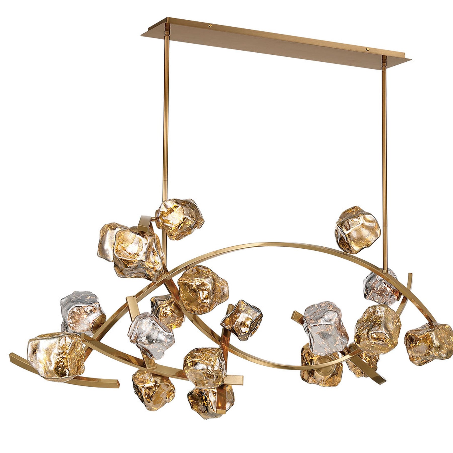 G9 LED - 3000K - 1900 Lumens - Sorano, 19 Light LED Chandelier, Brushed Brass - 64"L x 32"W x 29"H (Overall Height: 87") - 46.4 lbs.