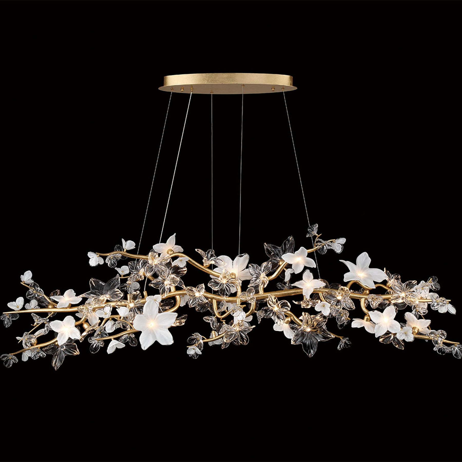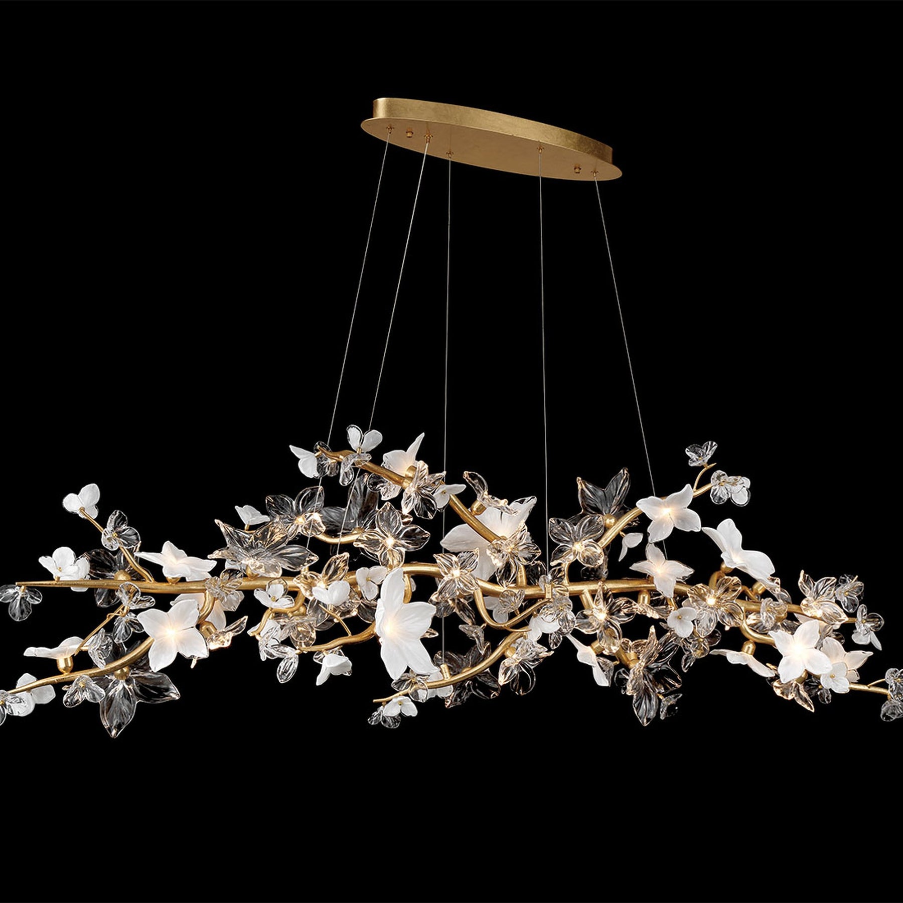 LED Integrated - 3000K - 2450 Lumens - Fiori, 47 Light Oval LED Chandelier, Gold Leaf - 71"L x 19.25"W x 19.25"H (Overall Height: 165") - 48 lbs.