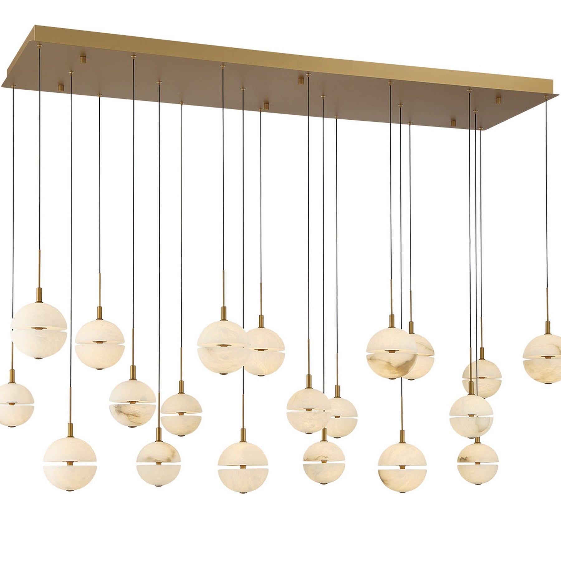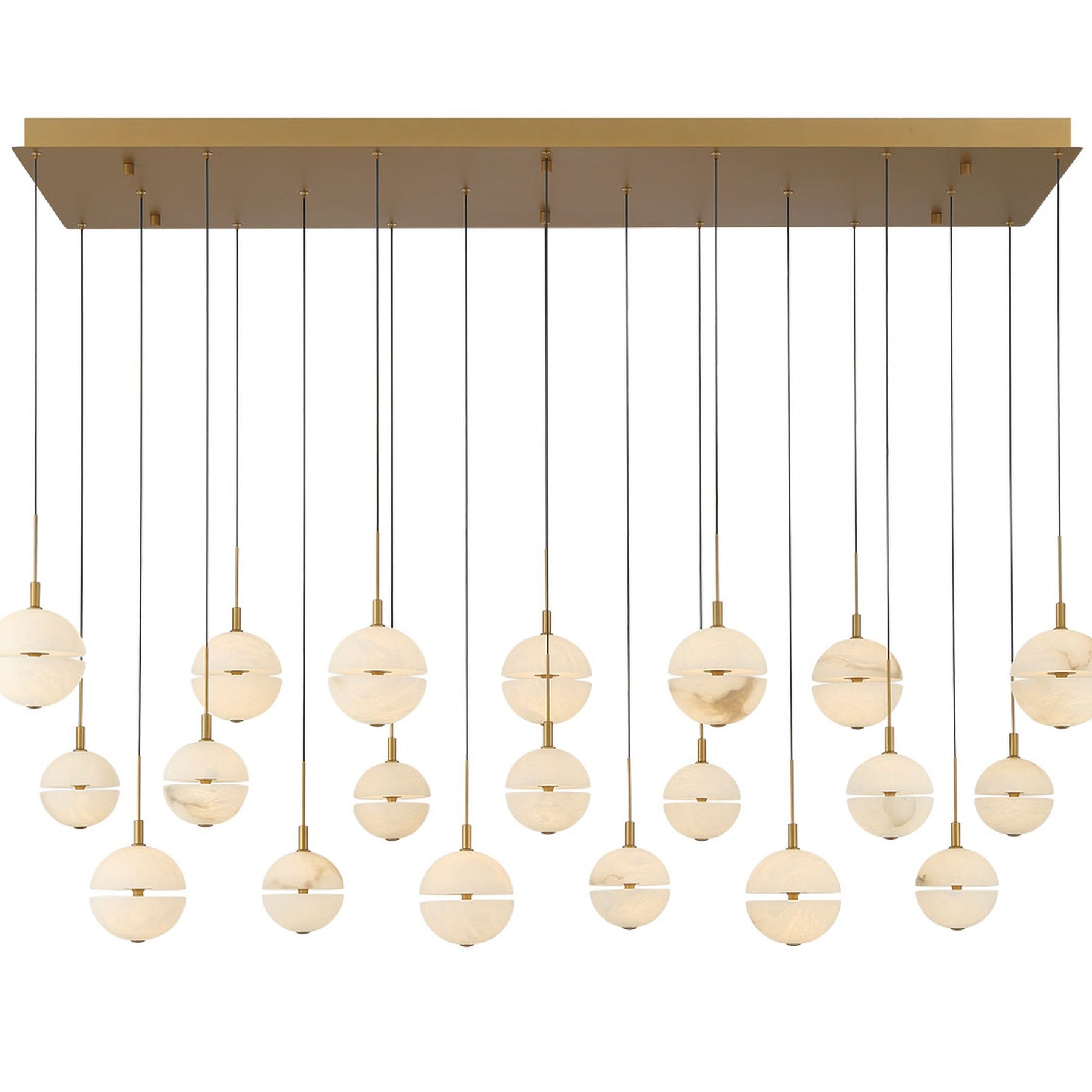 LED Integrated - 3000K - 15000 Lumens - Corfu, 20 Light Rectangular LED Chandelier, Painted Antique Brass, - 59"L x 17.75"W x 12.5"H (Overall Height: 156.75") - 79 lbs.