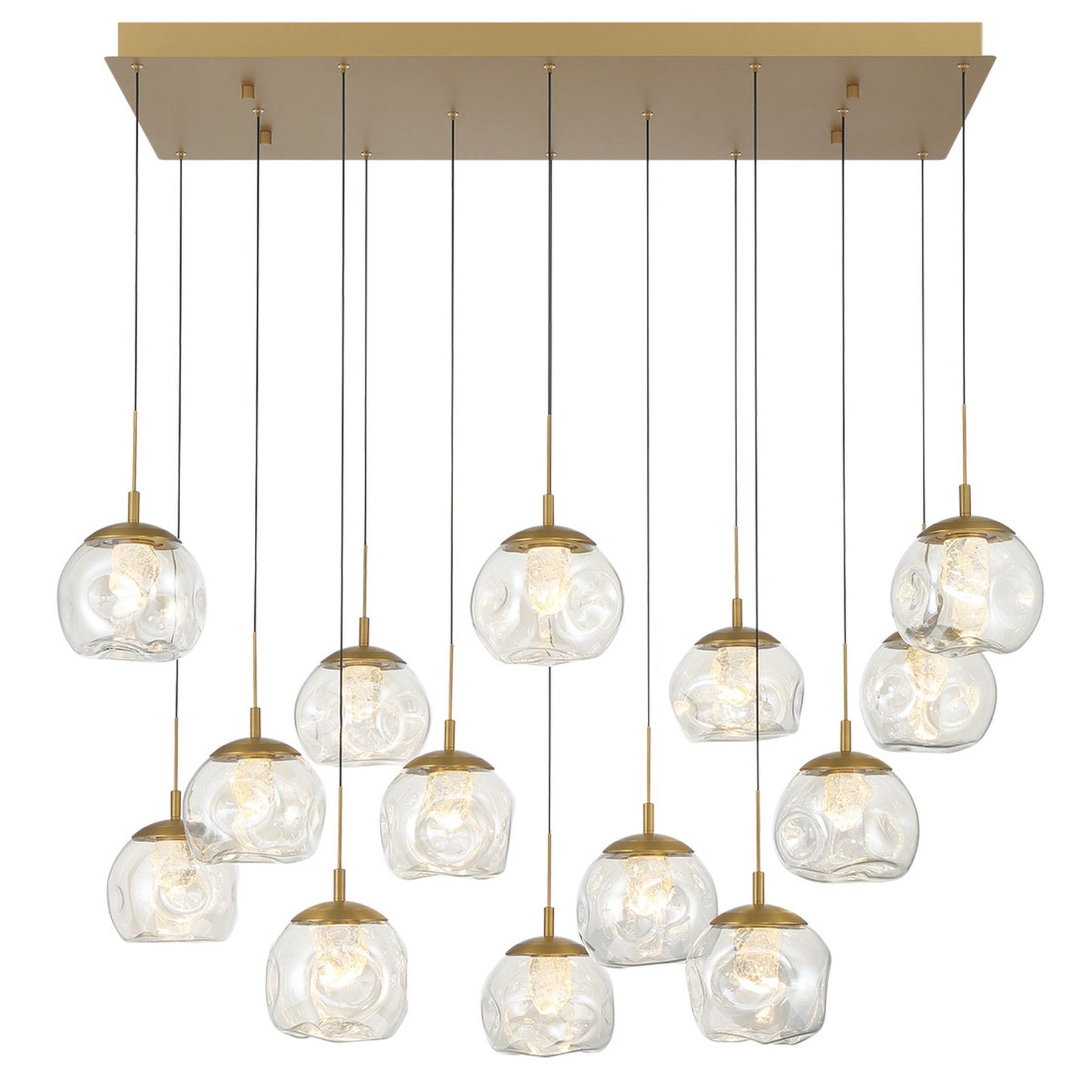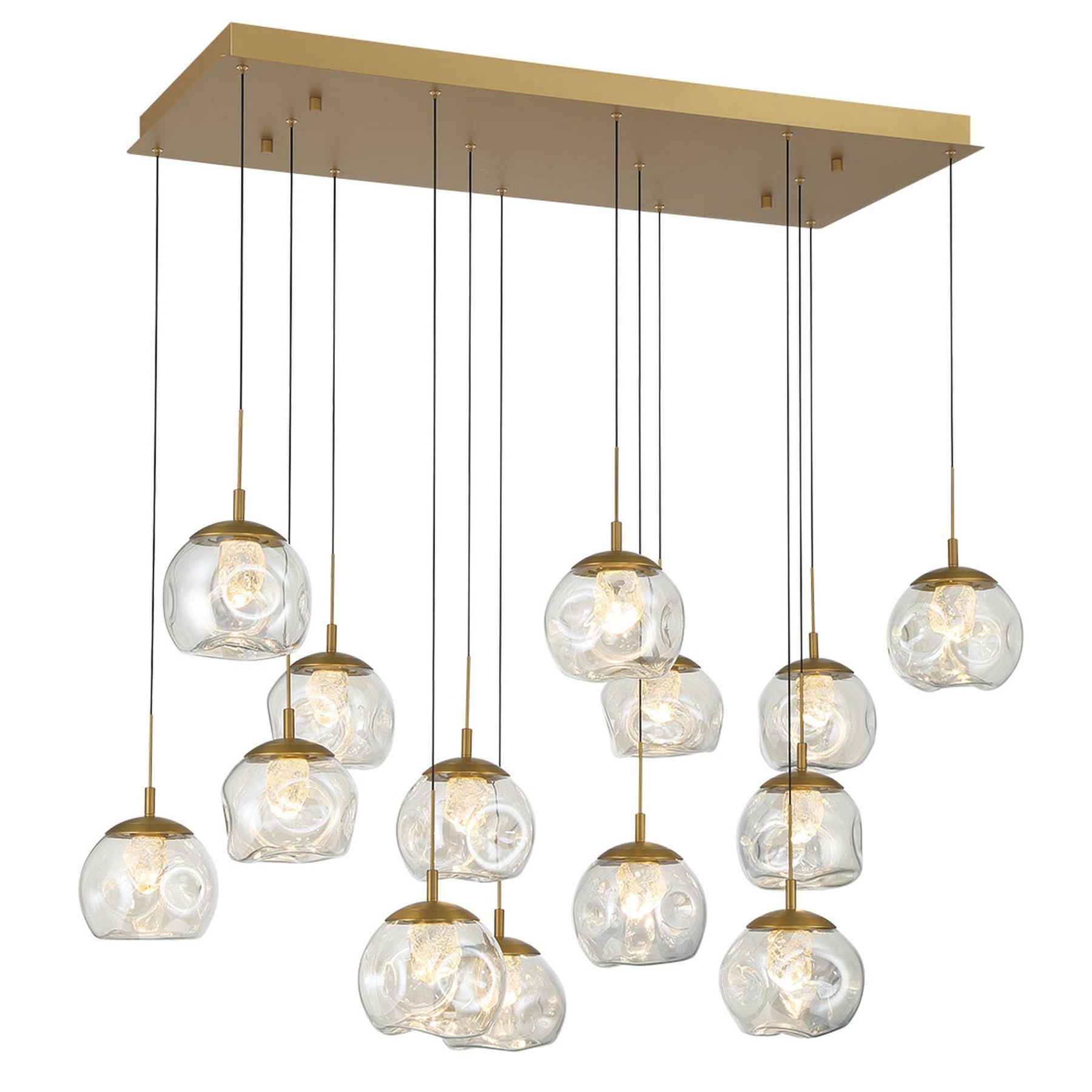 LED Integrated - 3000K - 4400 Lumens - Camerino, 14 Light Rectangular LED Chandelier, Painted Antique Brass - 41.25"L x 17.75"W x 11"H (Overall Height: 155") - 27 lbs.