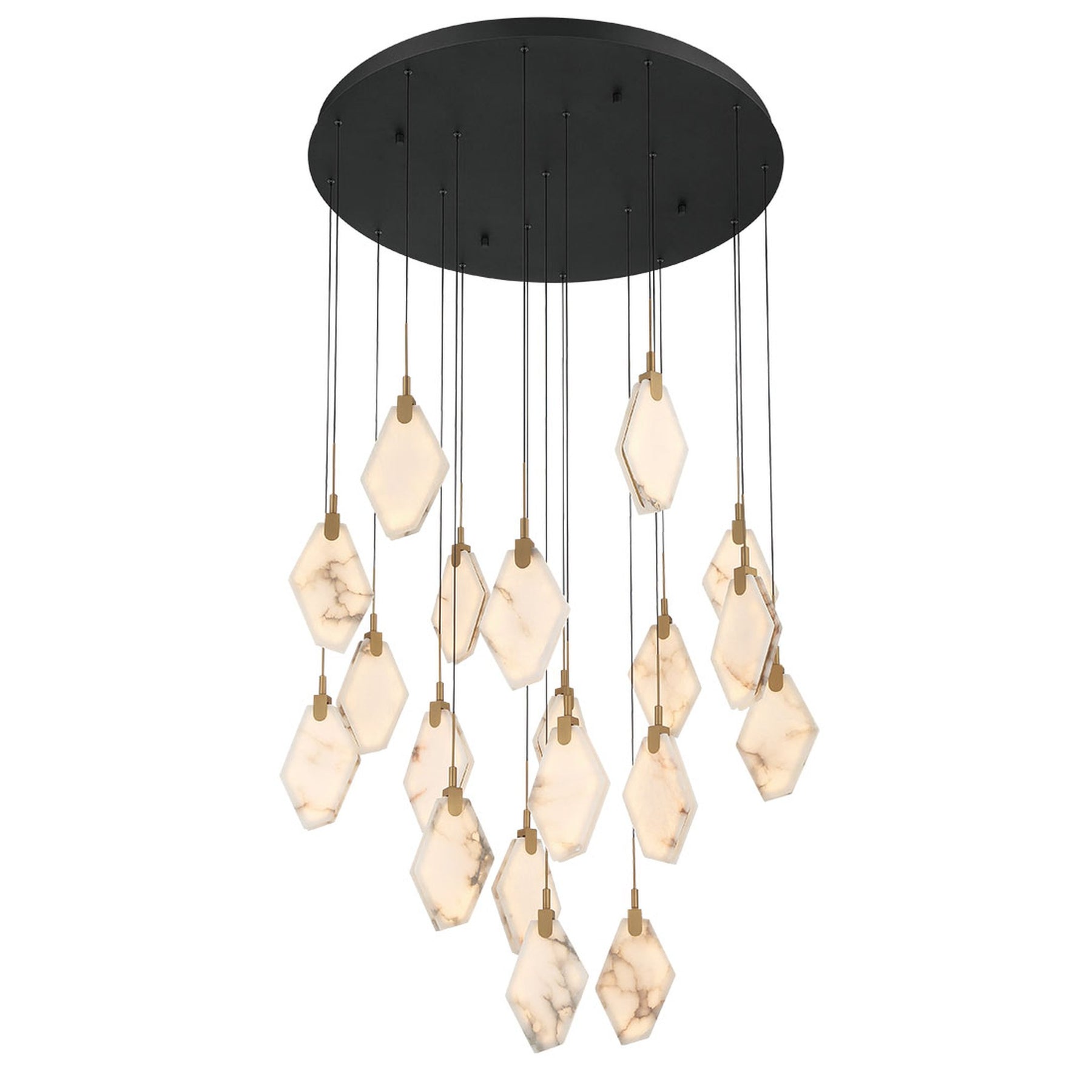 LED Integrated - 3000K - 13300 Lumens - Kosmos, 19 Light Round LED Chandelier, Matte Black, - 16.5"H x 35.75"D (Overall Height: 196.75") - 78 lbs.