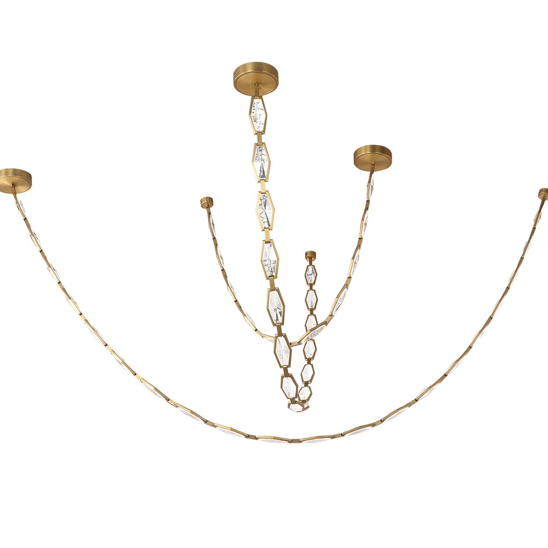 LED Integrated - 2700K |3000K | 3500K | 4000K |5000K - 2300 Lumens - Rimini, 10 Light LED Chandelier, Aged Brass - 9.6"L x 1.6"W x 95"H (Overall Height: 95") - 21 lbs.