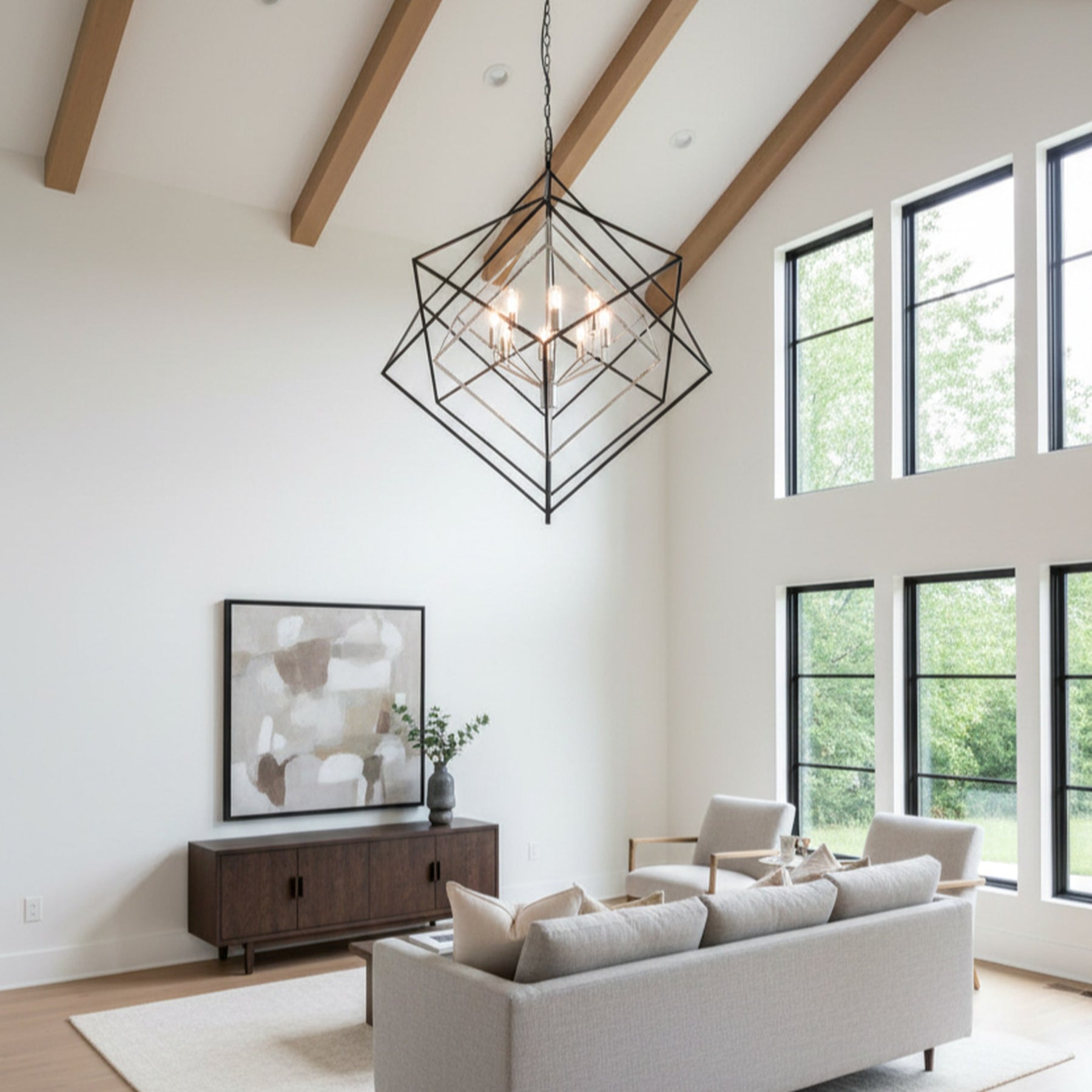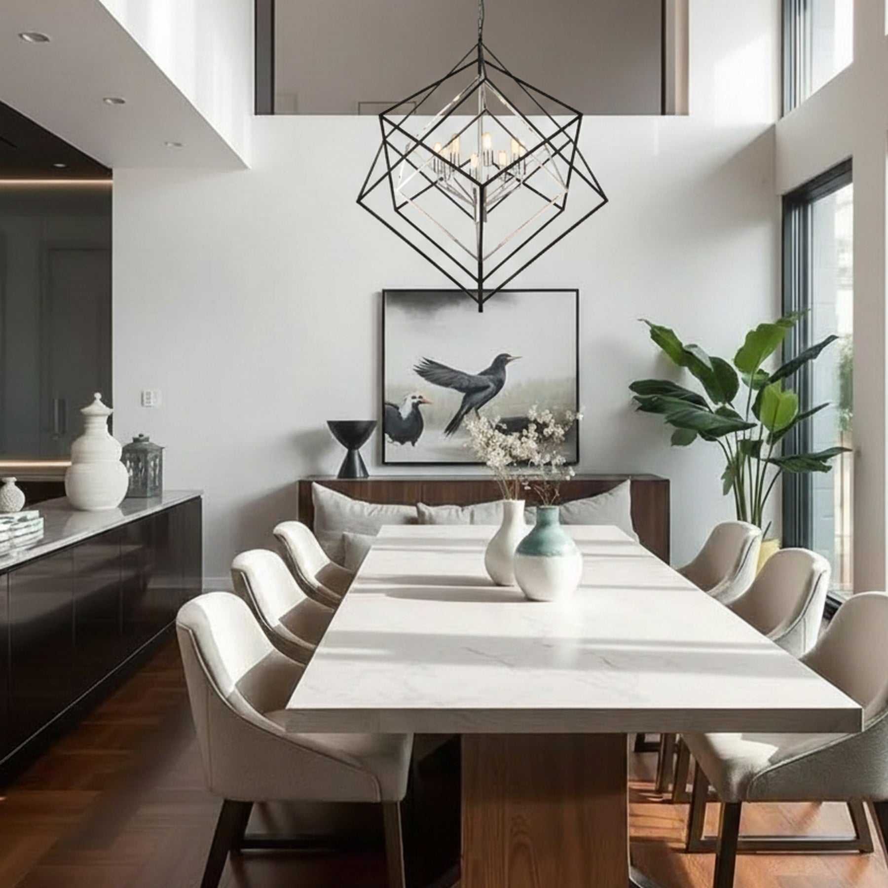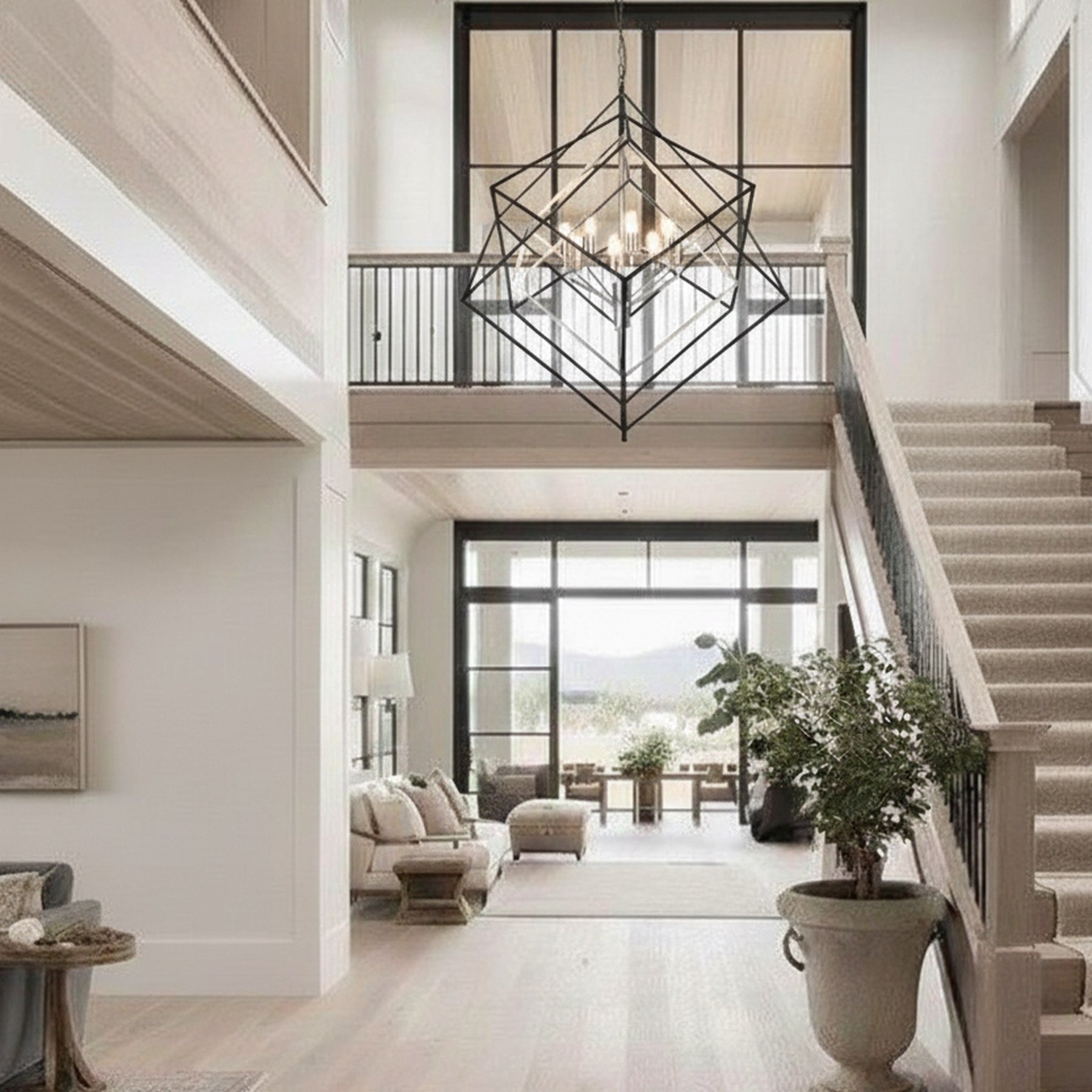8 x E26 bulbs - Chandelier - Matte Black/Chrome -28-48"W x 28-48"L x 50"H- Wire:20 ft - Chain:15 ft
