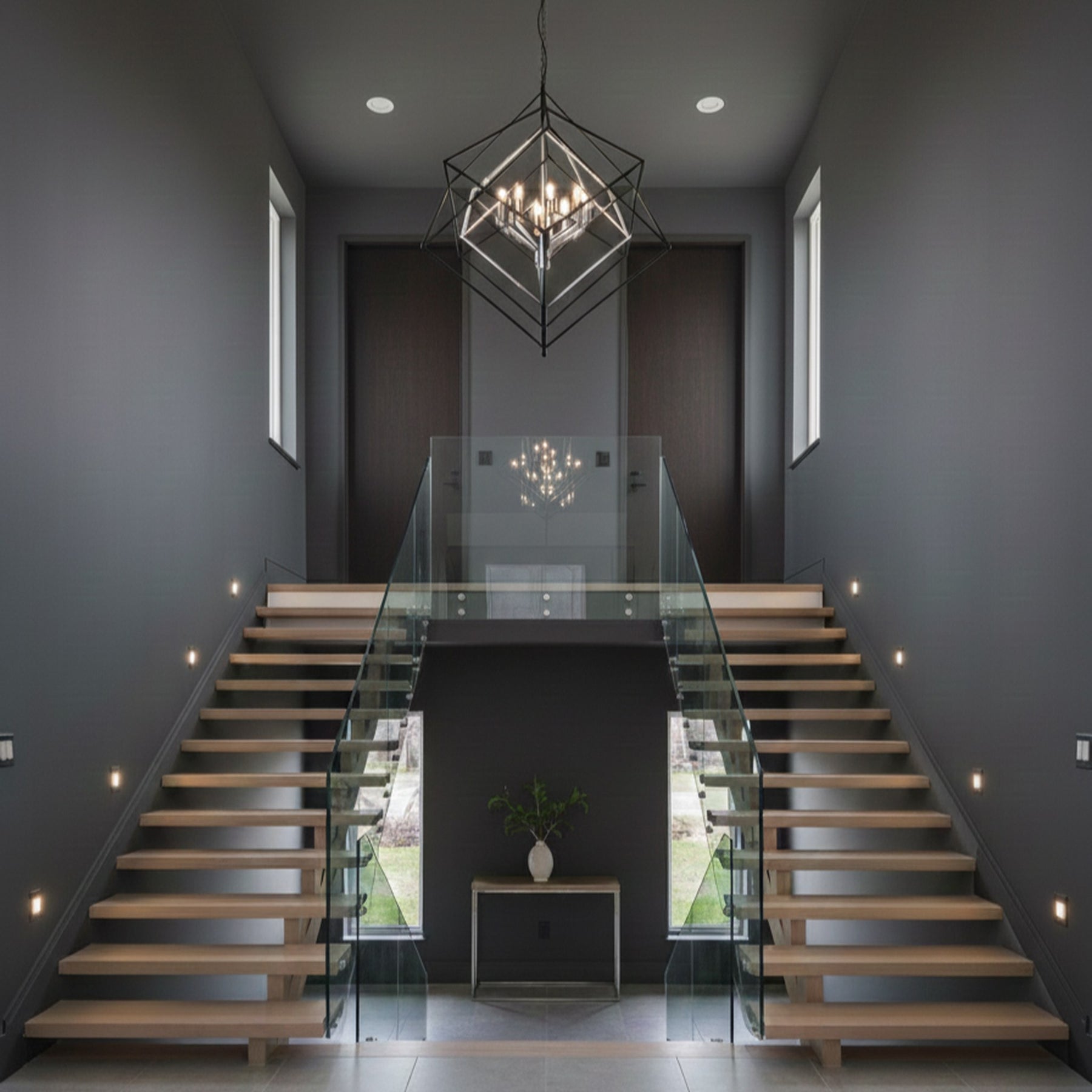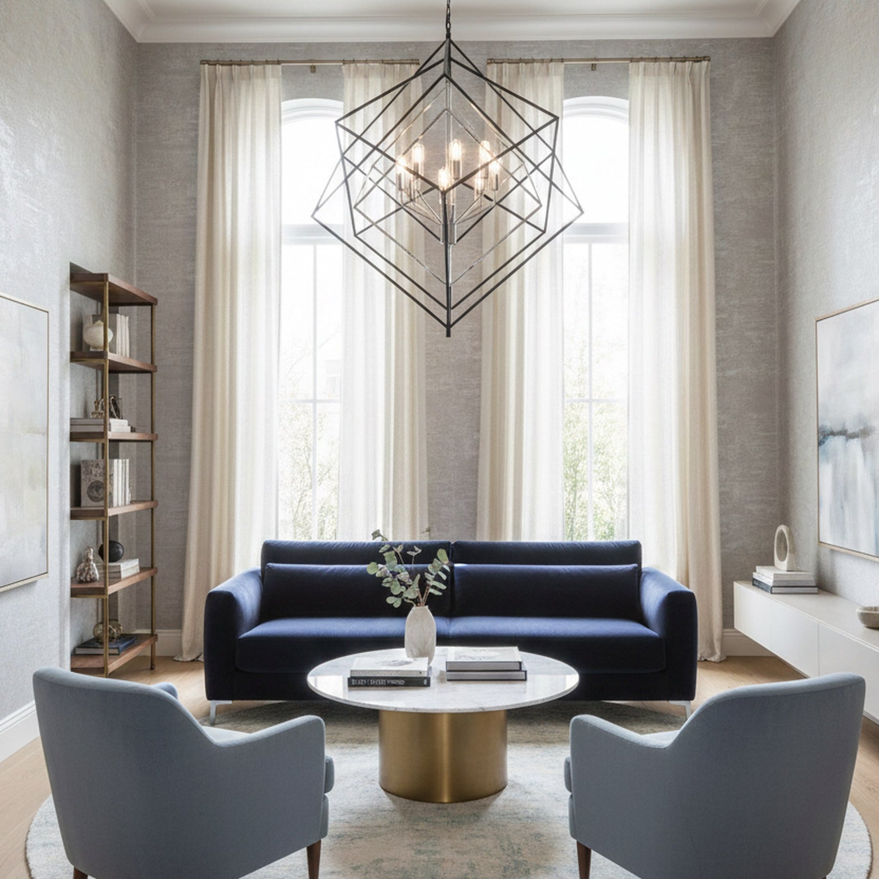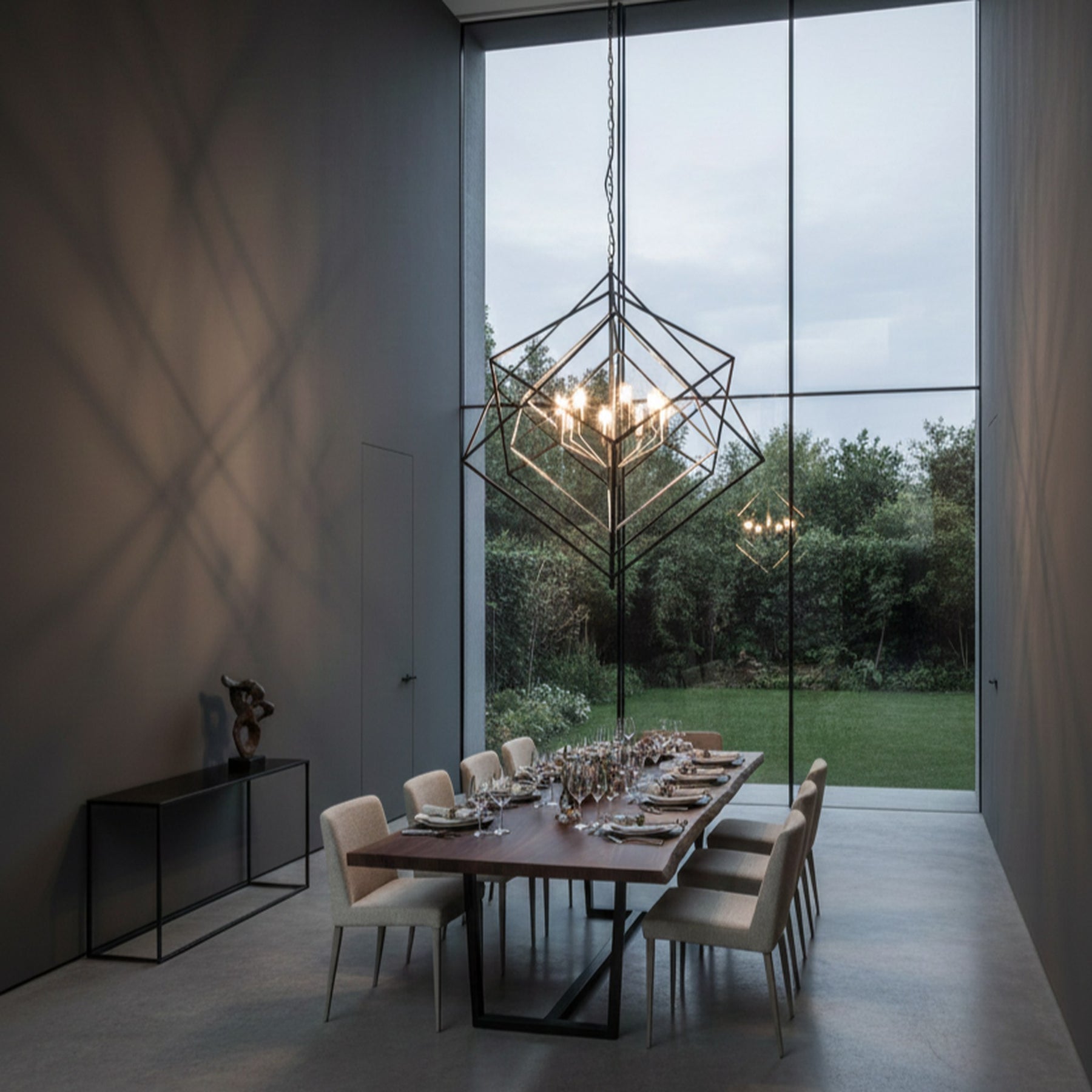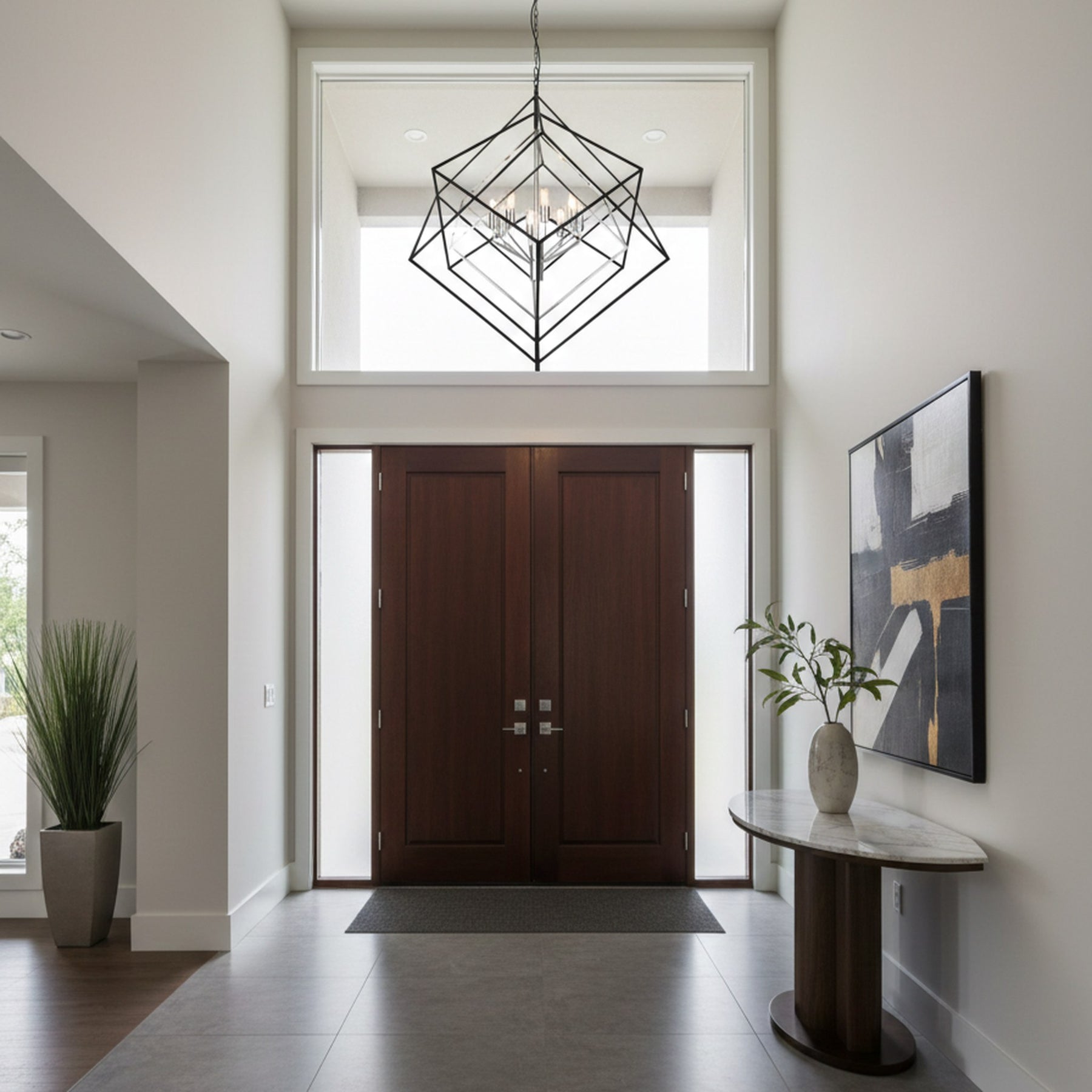 8 x E26 bulbs - Chandelier - Matte Black/Chrome -28-48"W x 28-48"L x 50"H- Wire:20 ft - Chain:15 ft
