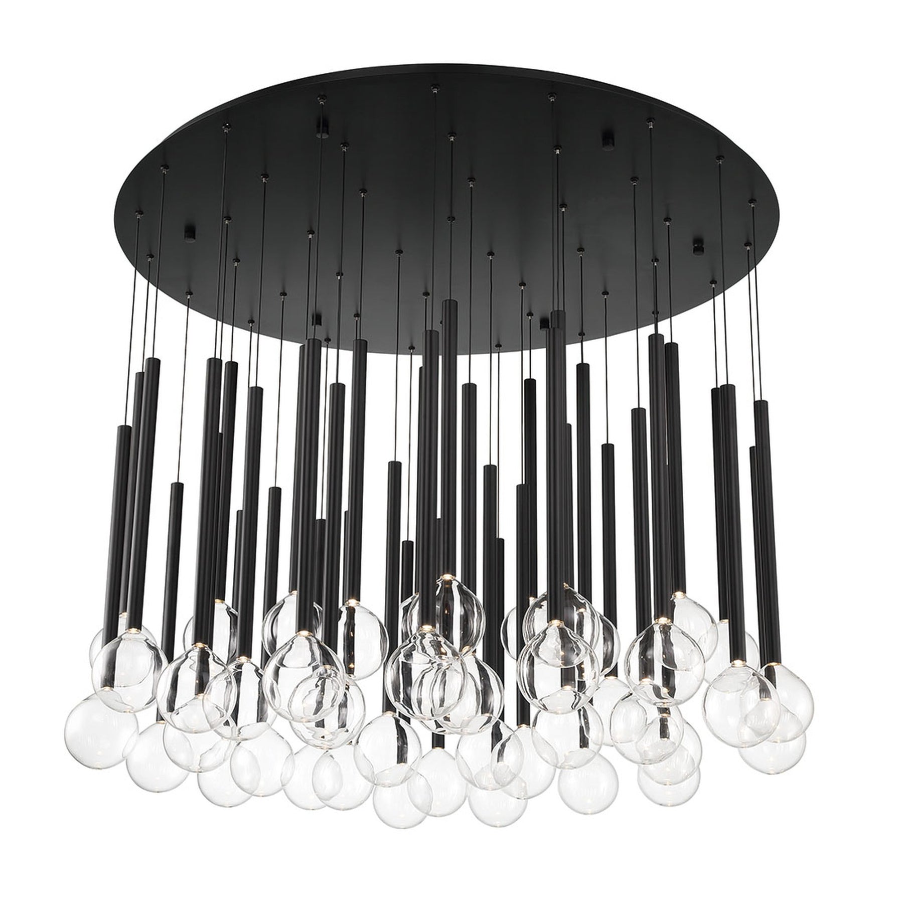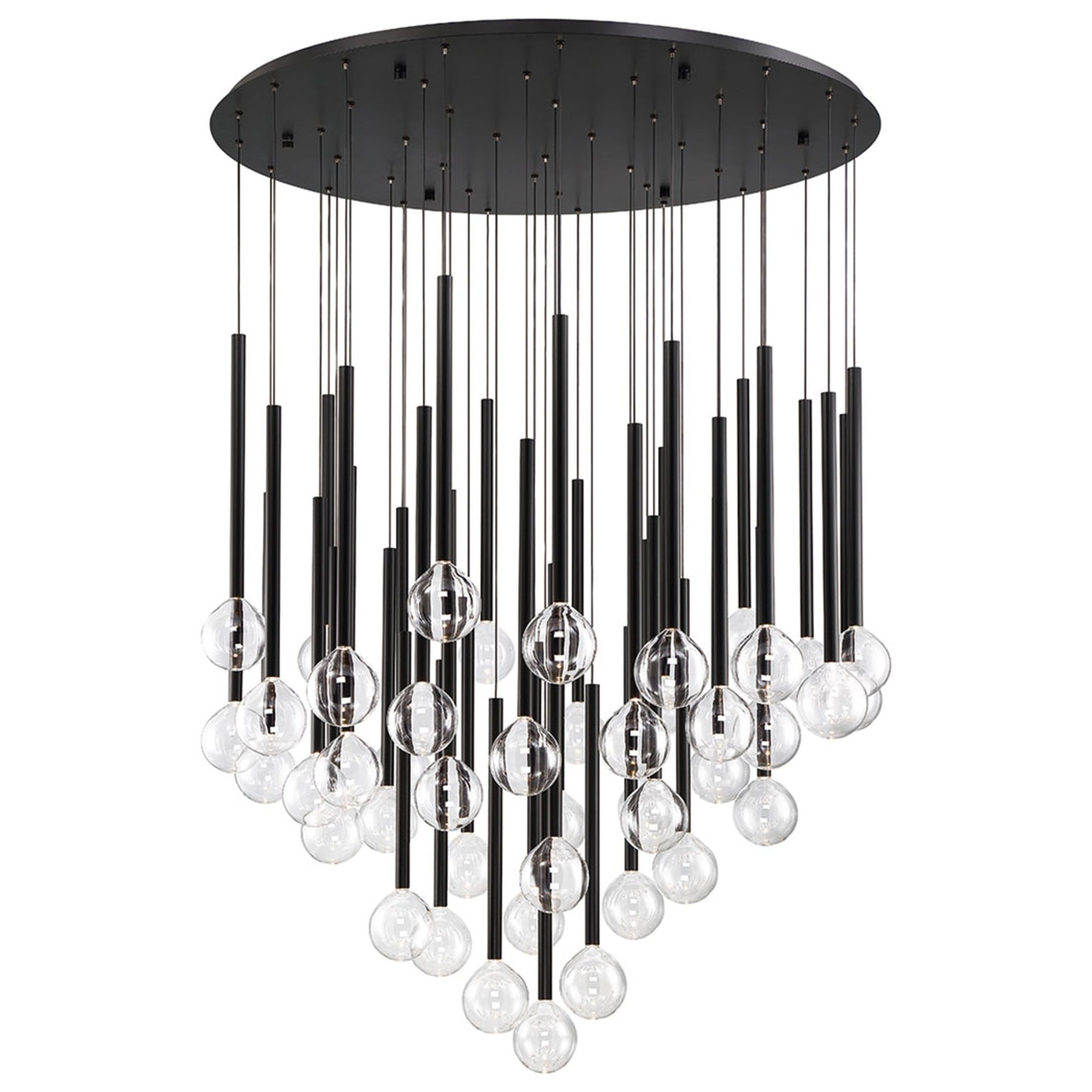 LED Integrated - 3000K - 2780 Lumens - Positano, 44 Light Round LED Chandelier, Matte Black - 23"H x 48"D (Overall Height: 120") - 113 lbs.
