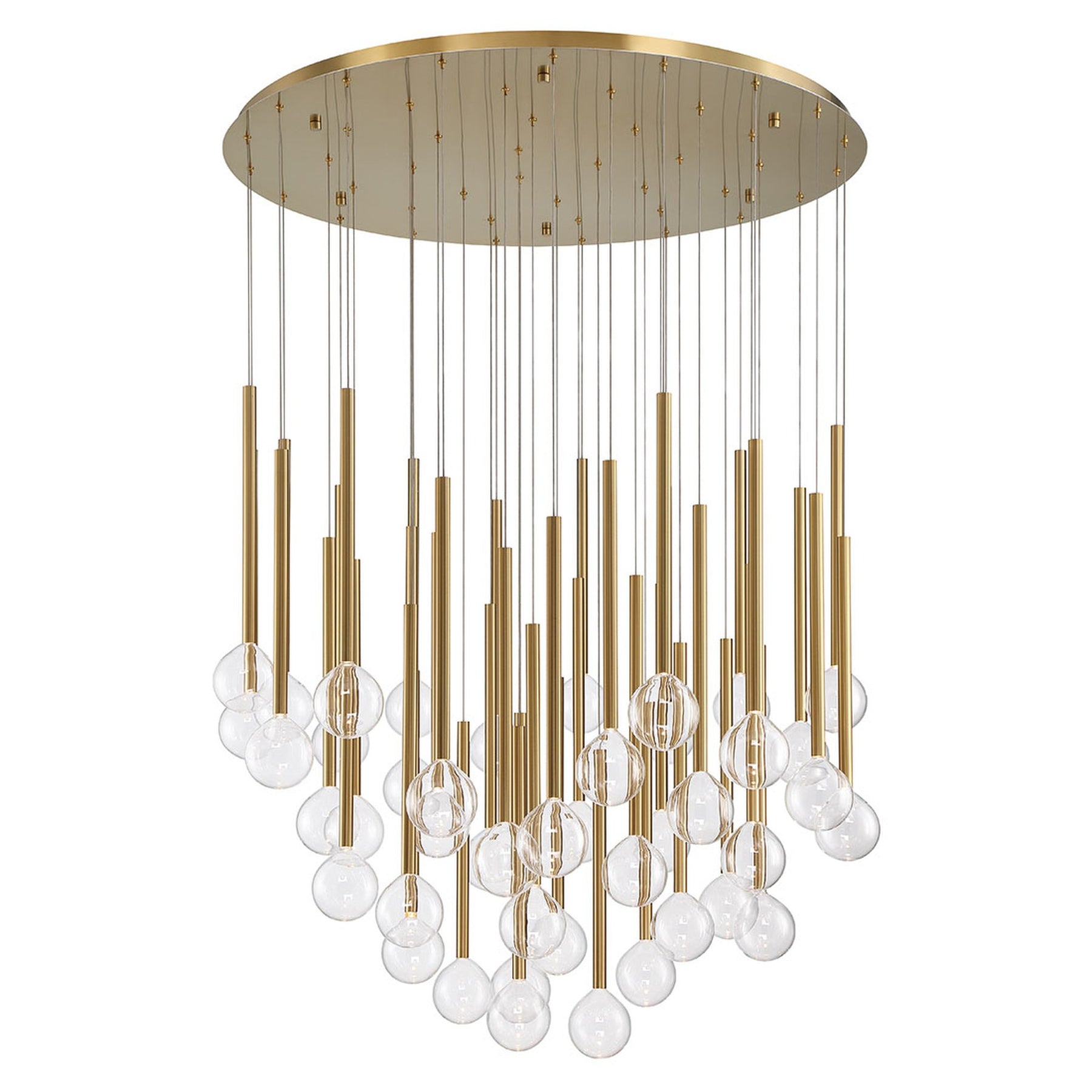 LED Integrated - 3000K - 2780 Lumens - Positano, 44 Light Round LED Chandelier, Plated Brushed Gold - 23"H x 48"D (Overall Height: 120") - 113 lbs.