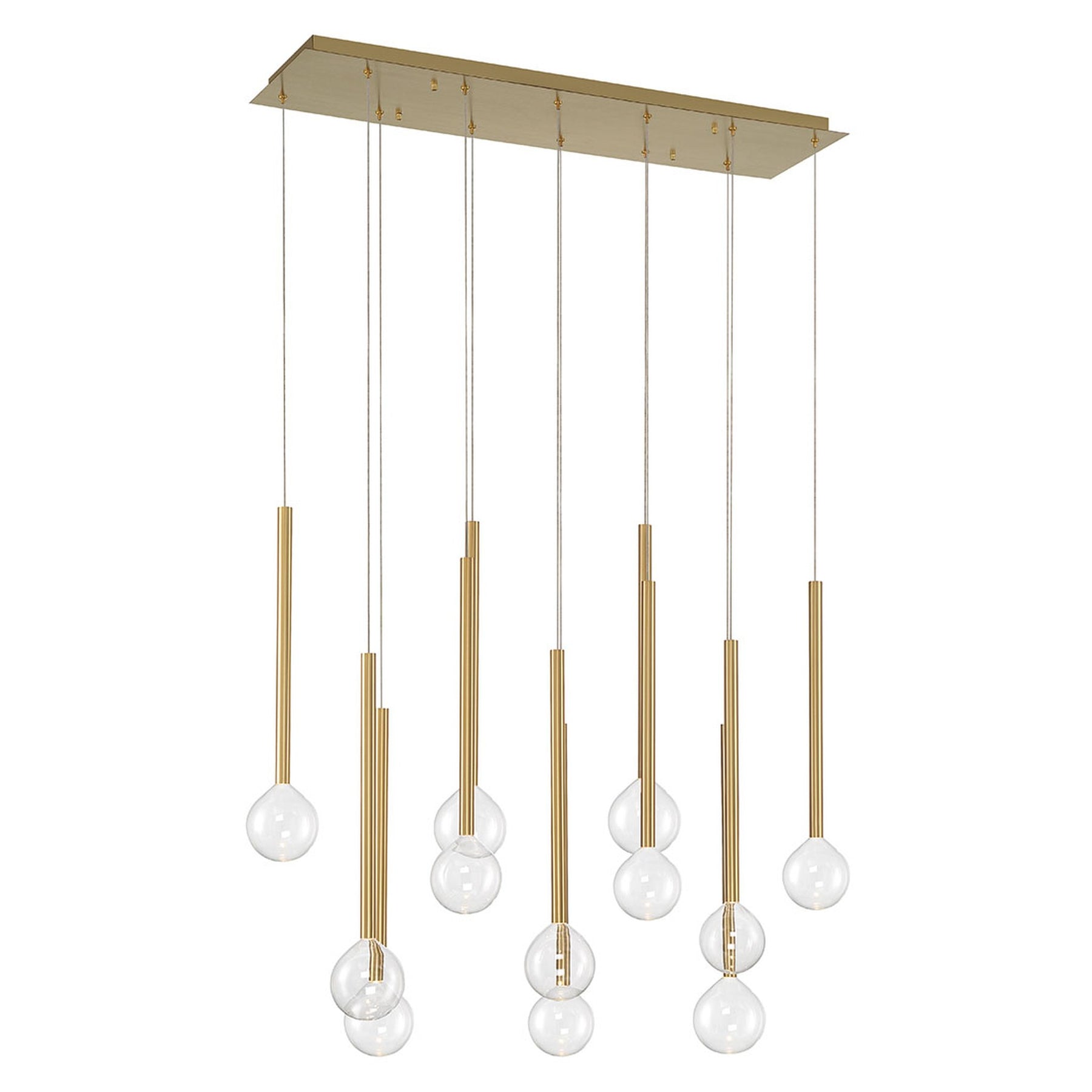 LED Integrated - 3000K - 760 Lumens - Positano, 12 Light Linear LED Chandelier, Plated Brushed Gold - 41"L x 10"W x 23"H (Overall Height: 120") - 26 lbs.
