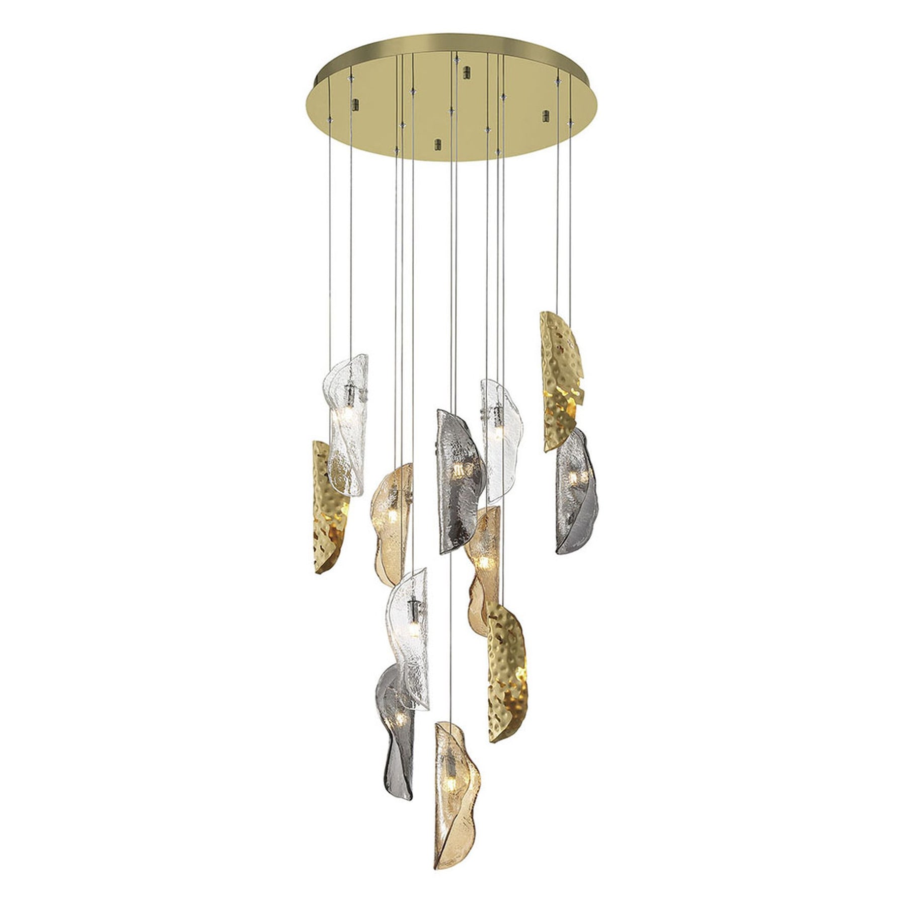 G4 LED - 3000K - 3450 Lumens - Sorrento, 12 Light Round LED Chandelier, Mixed with Copper Leaf, Gold Canopy - 11"H x 24"D (Overall Height: 108.5") - 35 lbs.