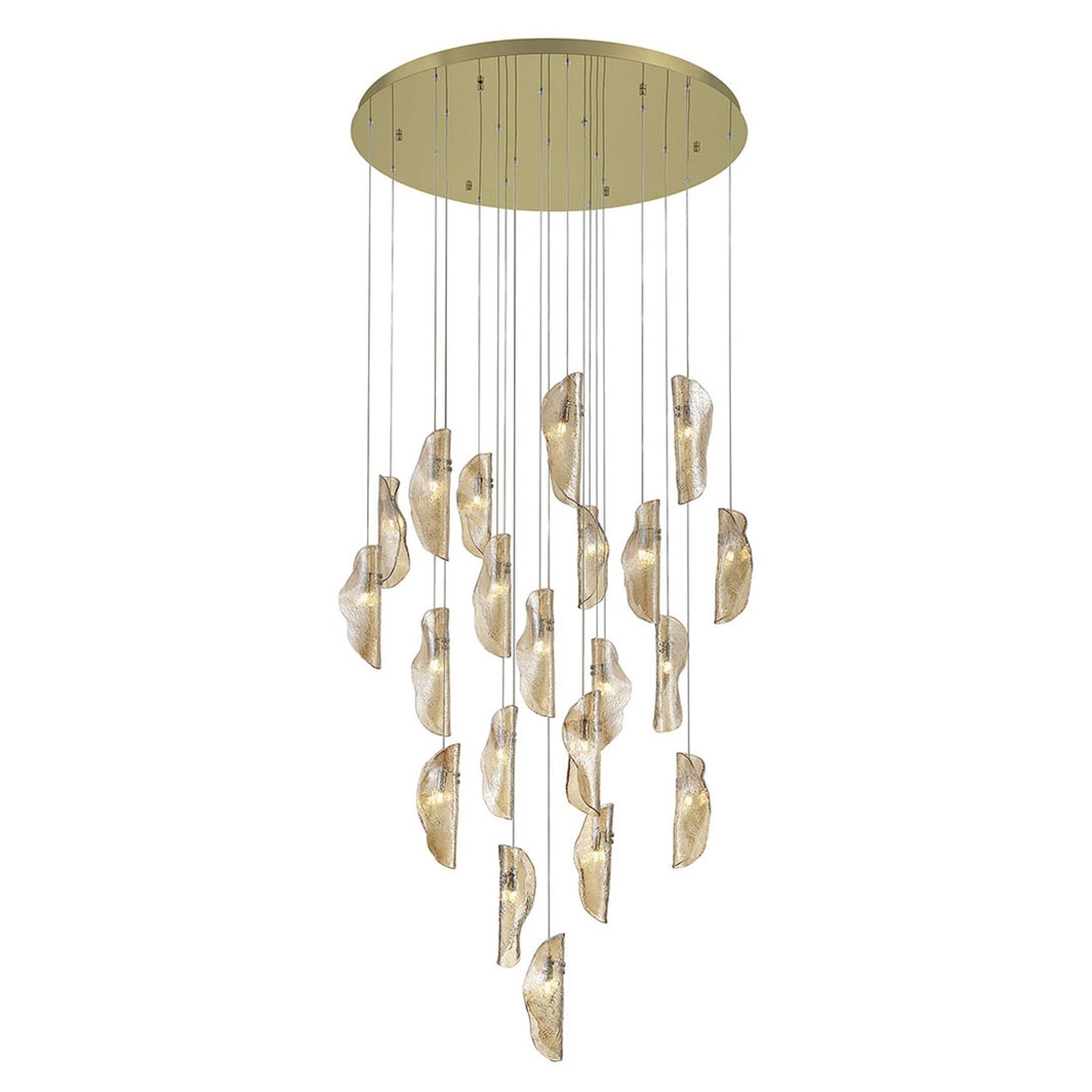 G4 LED - 3000K - 6050 Lumens - Sorrento, 21 Light Round LED Chandelier, Amber, Gold Canopy - 11"H x 36"D (Overall Height: 192.5") - 84.7 lbs.