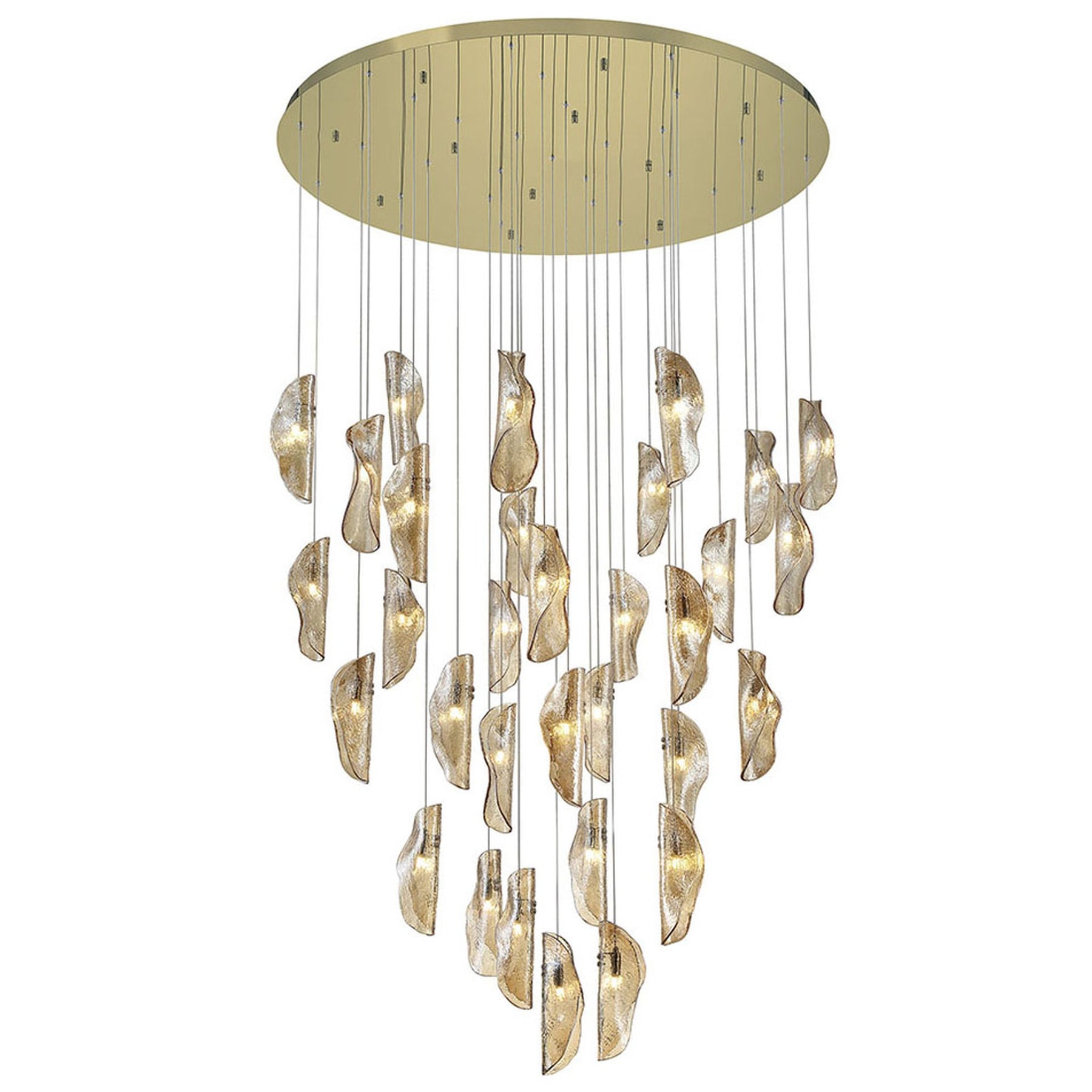 G4 LED - 3000K - 8900 Lumens - Sorrento, 32 Light LED Grand Chandelier, Amber, Gold Canopy - 11"H x 48"D (Overall Height: 192.5") - 149.6 lbs.