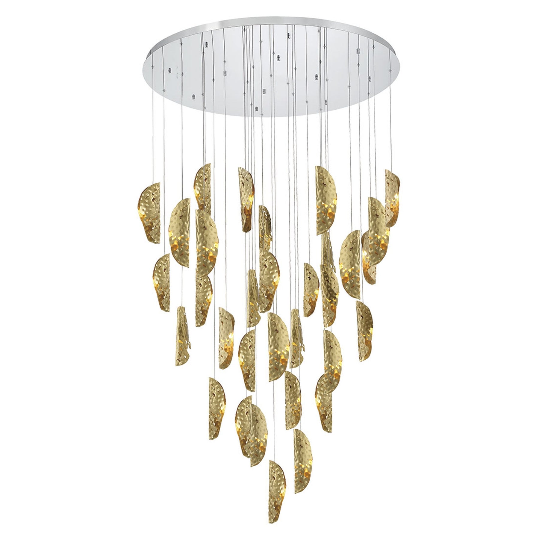 G4 LED - 3000K - 8900 Lumens - Sorrento, 32 Light round LED Chandelier, Copper, Chrome Canopy - 11"H x 48"D (Overall Height: 192.5") - 121.4 lbs.