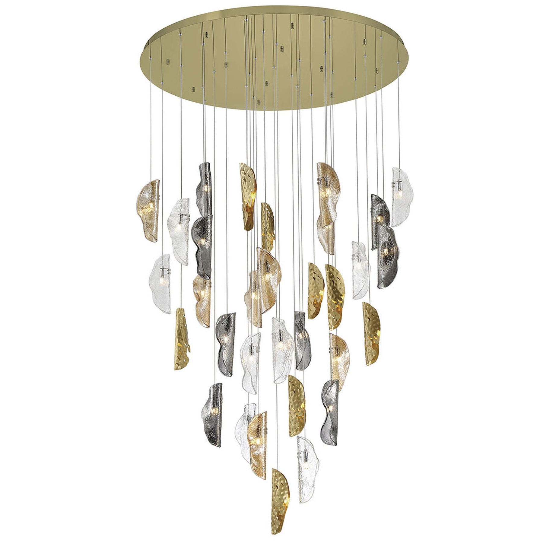G4 LED - 3000K - 8900 Lumens - Sorrento, 32 Light LED Grand Chandelier, Mixed with Copper Leaf, Gold Canopy - 11"H x 48"D (Overall Height: 192.5") - 142.6 lbs.