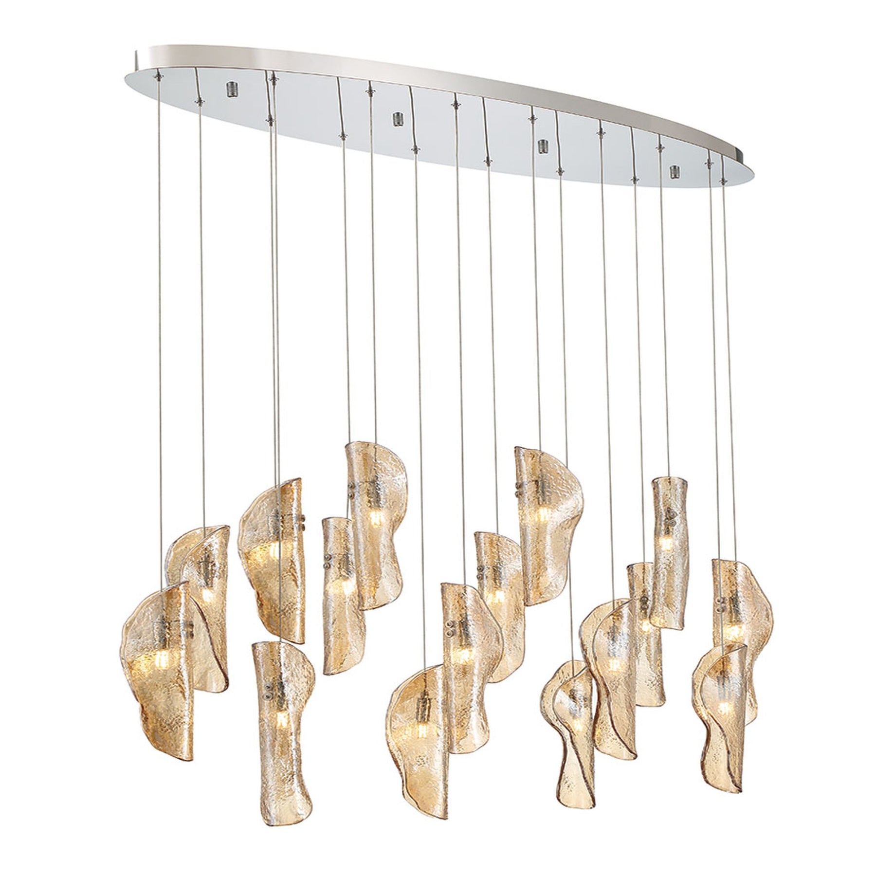 G4 LED - 3000K - 4360 Lumens - Sorrento, 16 Light Oval LED Chandelier, Amber, Chrome Canopy - 48"L x 14"W x 11"H (Overall Height: 156.5") - 38 lbs.