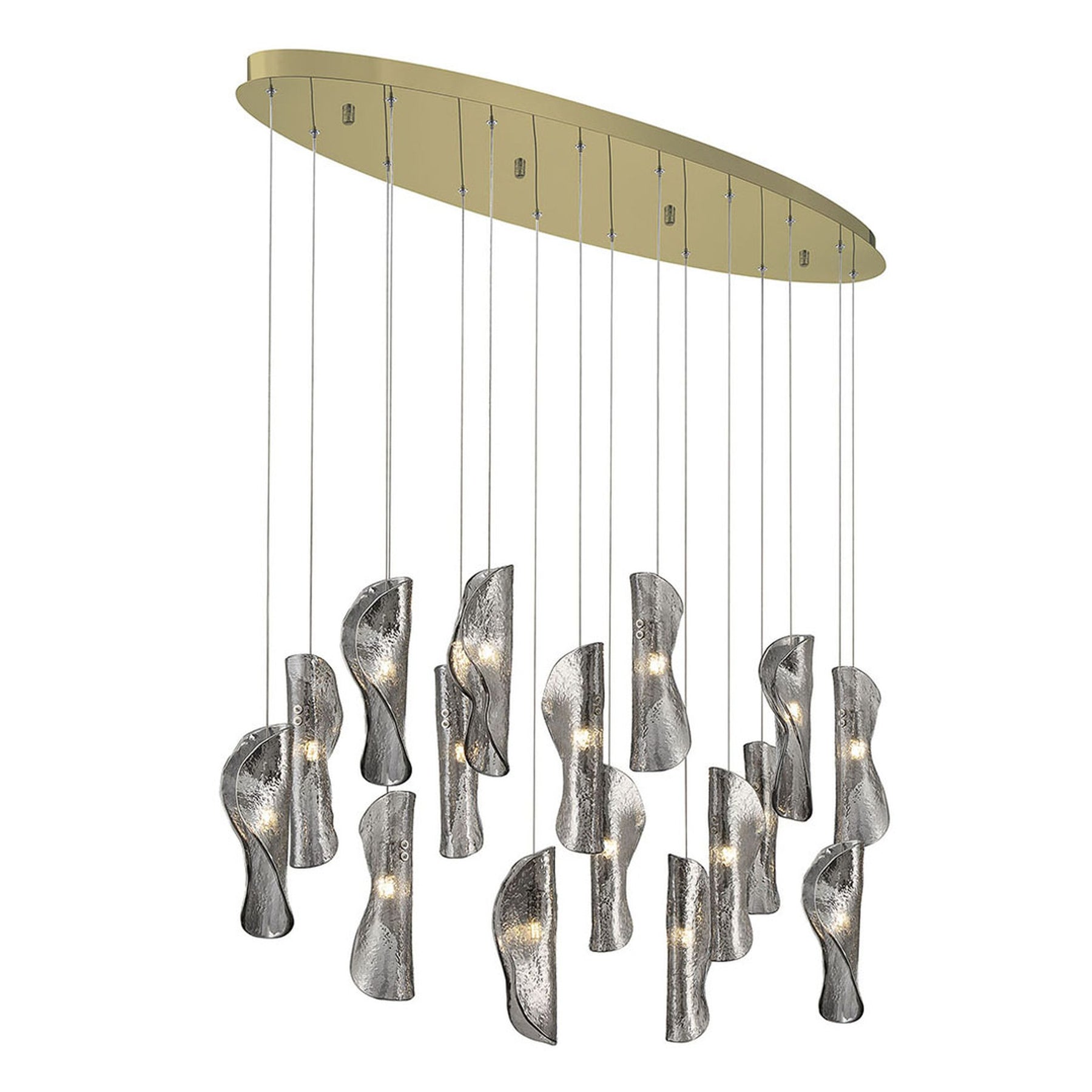 G4 LED - 3000K - 4360 Lumens - Sorrento, 16 Light Oval LED Chandelier, Smoke, Gold Canopy - 48"L x 14"W x 11"H (Overall Height: 156.5") - 38 lbs.