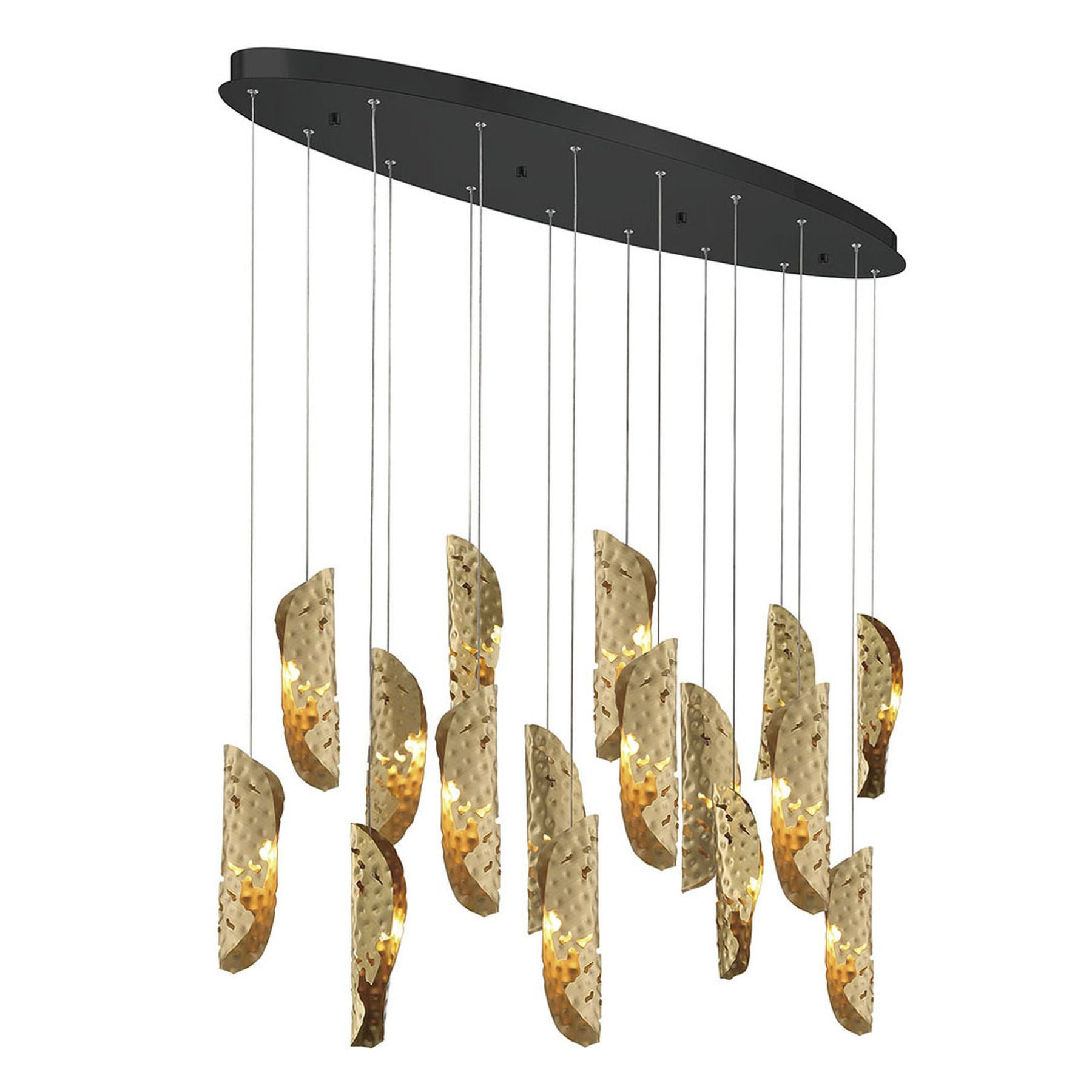 G4 LED - 3000K - 4360 Lumens - Sorrento, 16 Light Oval LED Chandelier, Copper, Black Canopy - 48"L x 14"W x 11"H (Overall Height: 156.5") - 27.5 lbs.