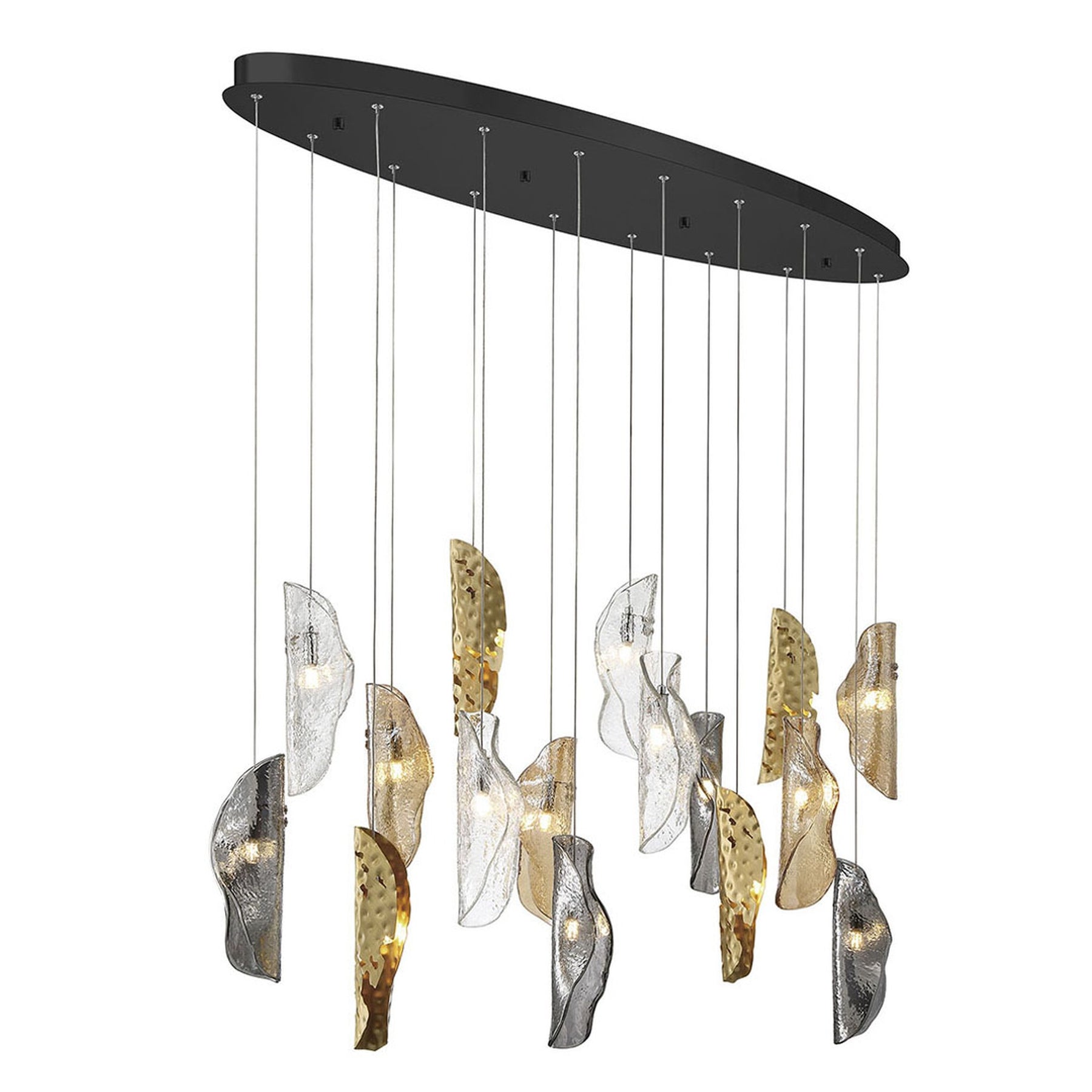 G4 LED - 3000K - 4360 Lumens - Sorrento, 16 Light Oval LED Chandelier, Mixed with Copper Leaf, Black Canopy - 48"L x 14"W x 11"H (Overall Height: 156.5") - 35 lbs.