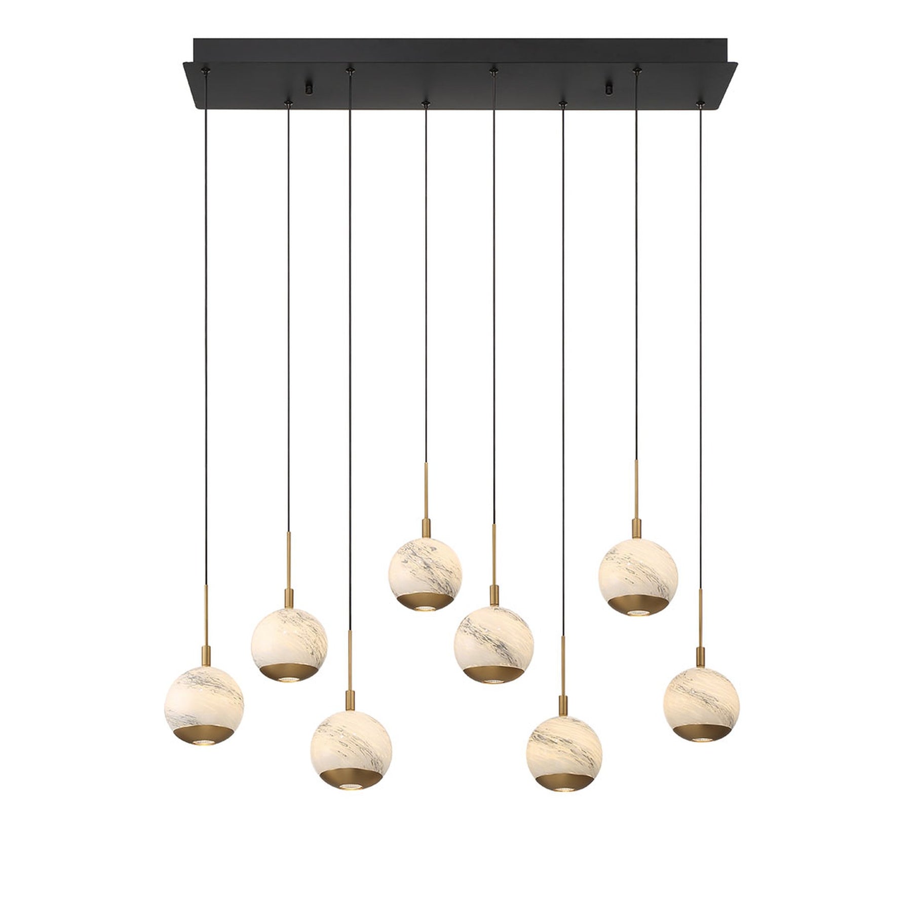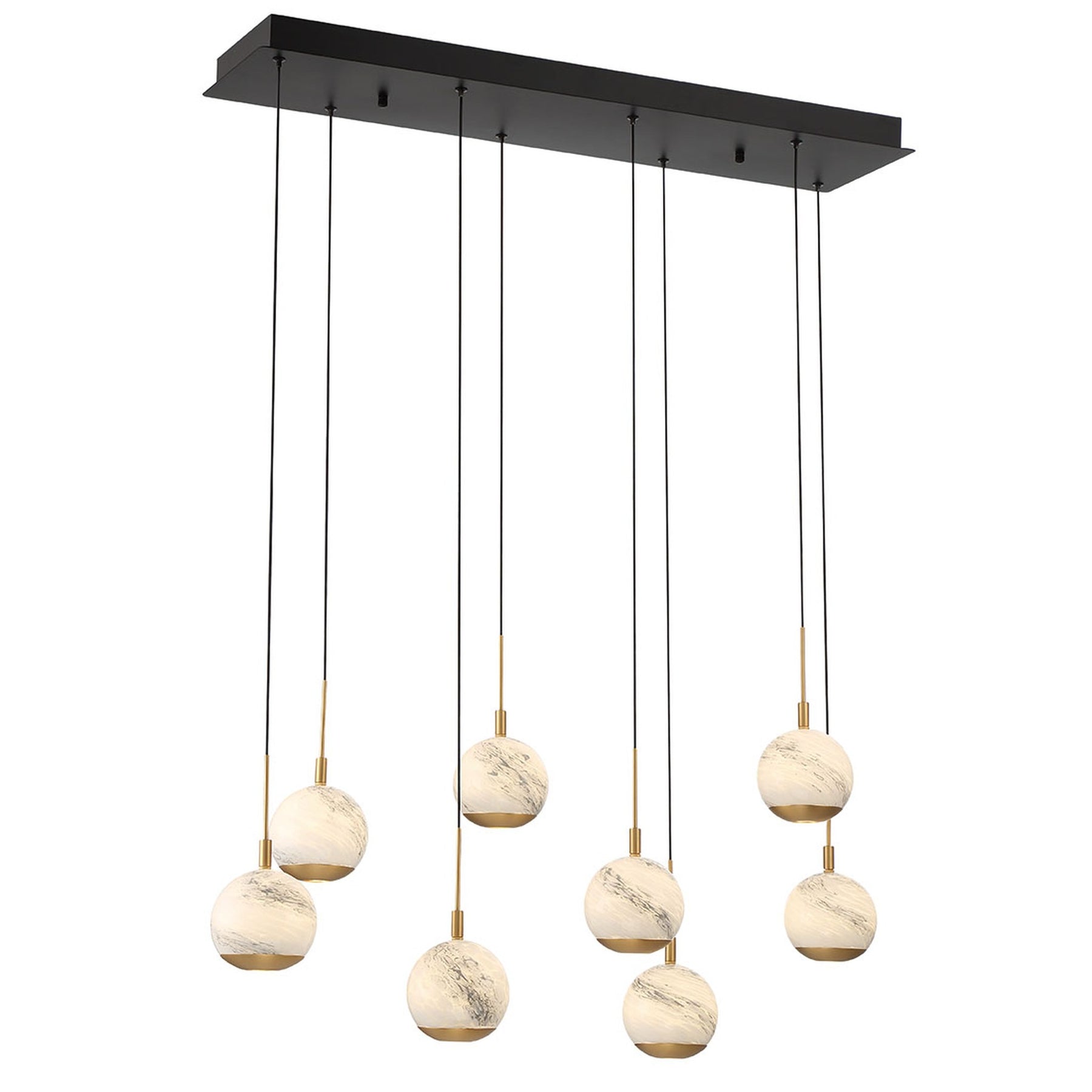 LED Integrated - 3000K - 3250 Lumens - Baveno, 8 Light Rectangular LED Chandelier, Matte Black - 35.5"L x 9"W x 9.75"H (Overall Height: 155.5") - 20.95 lbs.