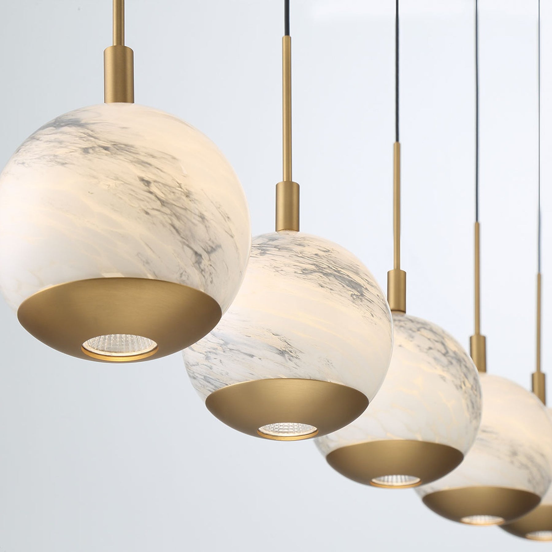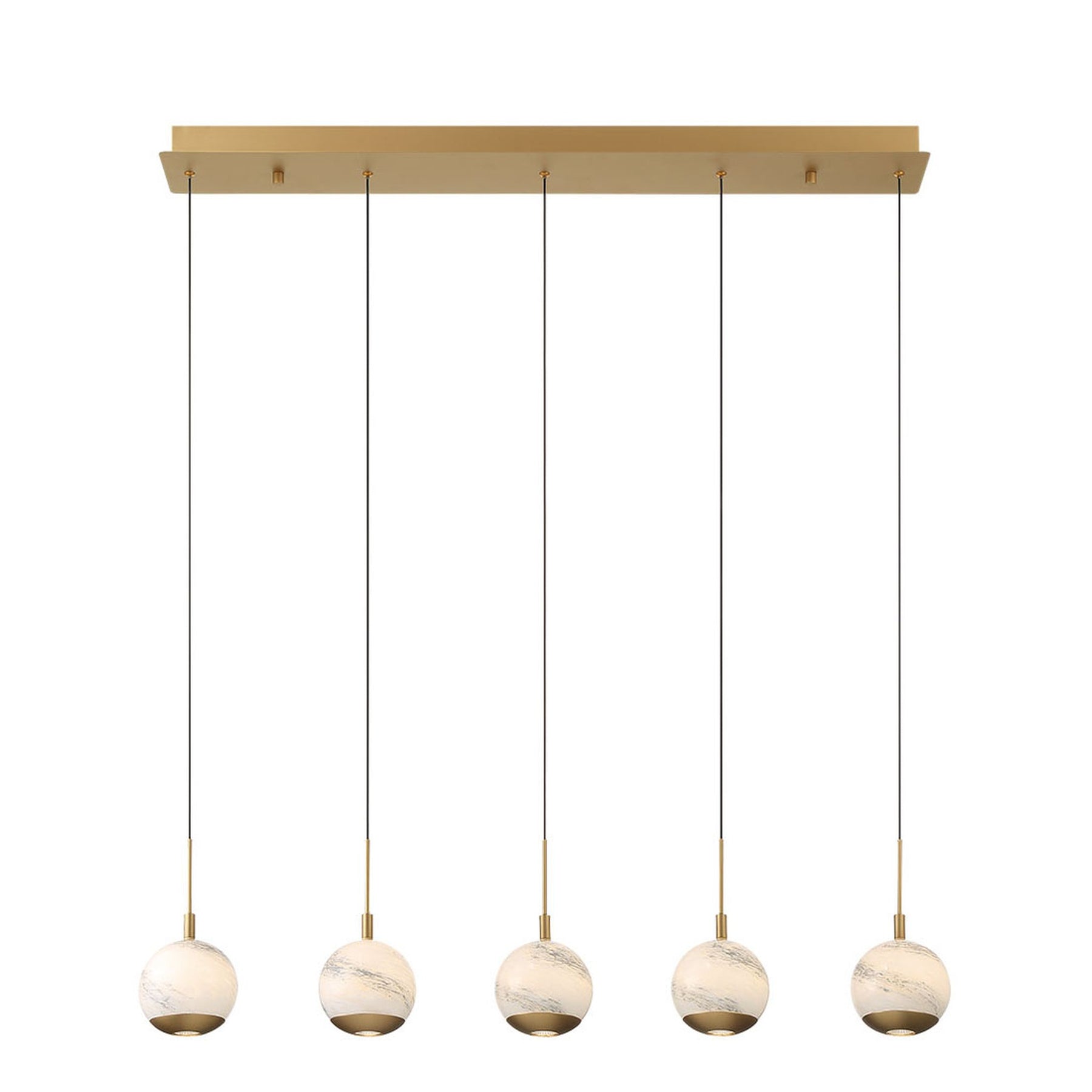 LED Integrated - 3000K - 2050 Lumens - Baveno, 5 Light Linear LED Chandelier, Painted Antique Brass - 41.25"L x 6"W x 9.75"H (Overall Height: 155.5") - 15.21 lbs.
