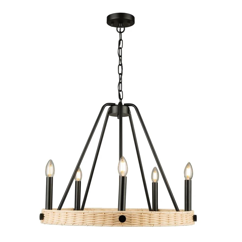 5 x E12 (Not Included), Perris 5 Light Chandelier Black, Indoor/Dry, 7.5Lbs., Size: W24" x L24" x H20", Dimmable, Indoor, Dry Location
