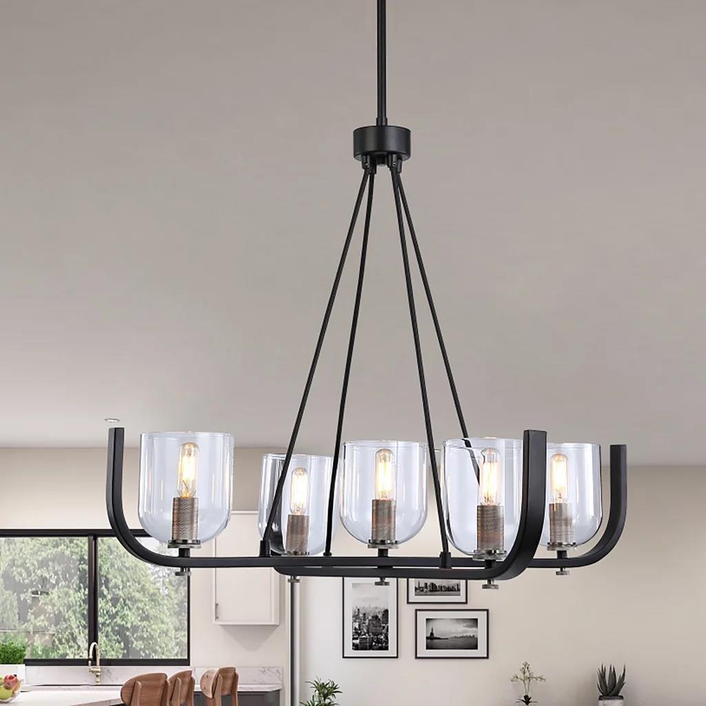 5 x E12 (Not Includec), Cheshire Collection 5-Light Chandelier, Black & Nickel, 9.9Lbs., Size: W30'' x L30'' x H25.5'', Dimmable