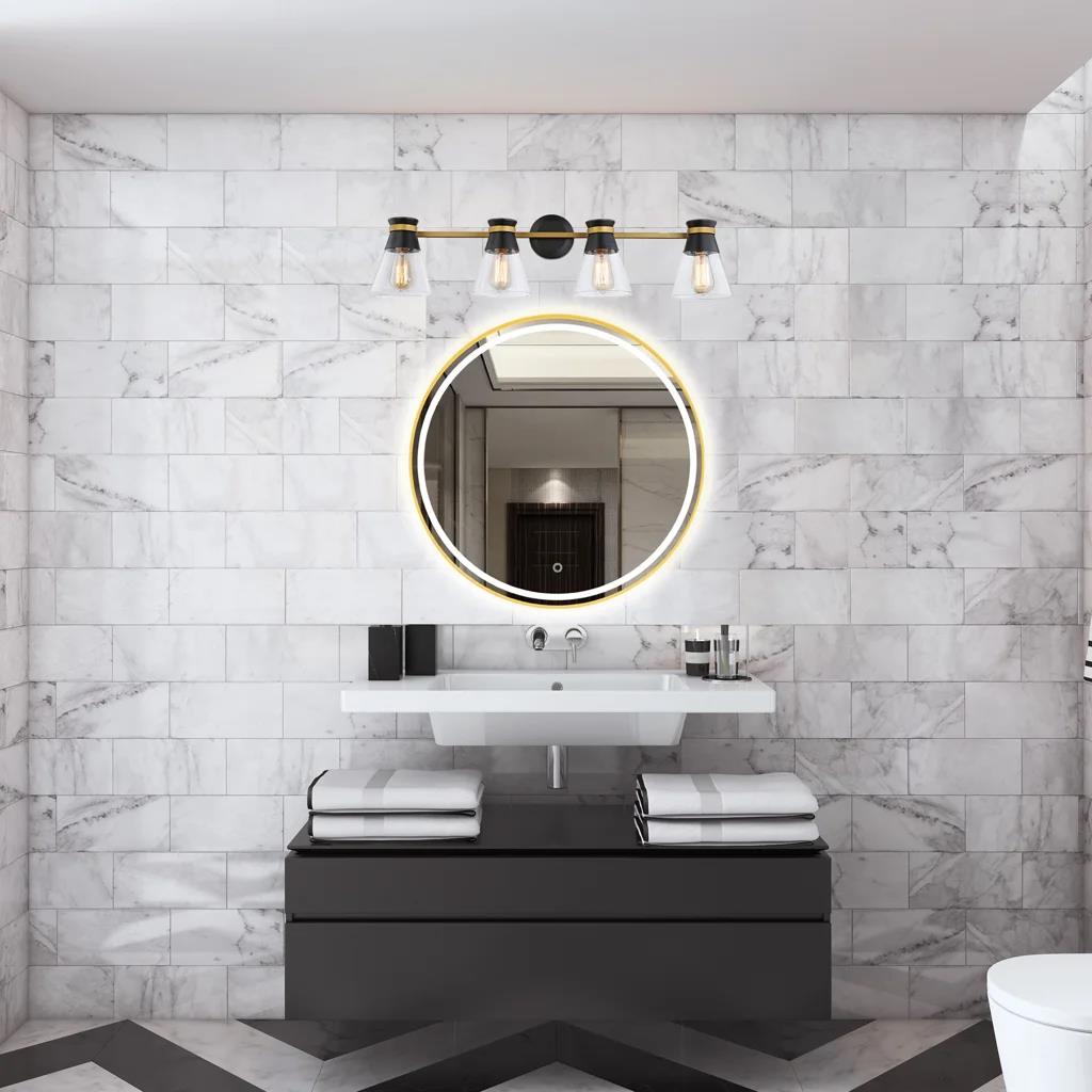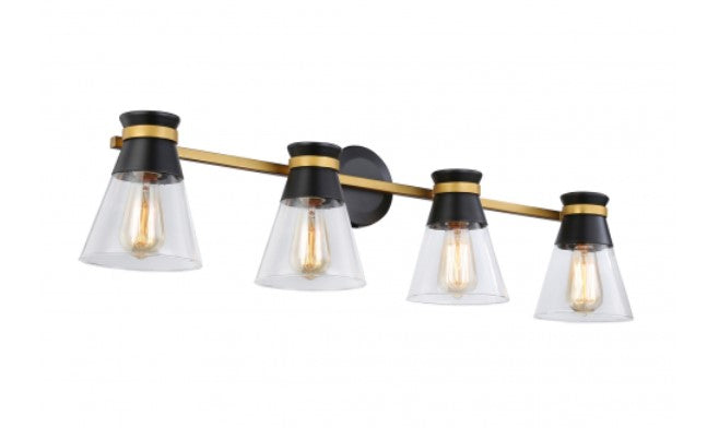 4 x E26 Bulbs - Vanity Light - Black & Brushed Brass Metal / Clear Glass - W36'' x H9'' x E6.5"