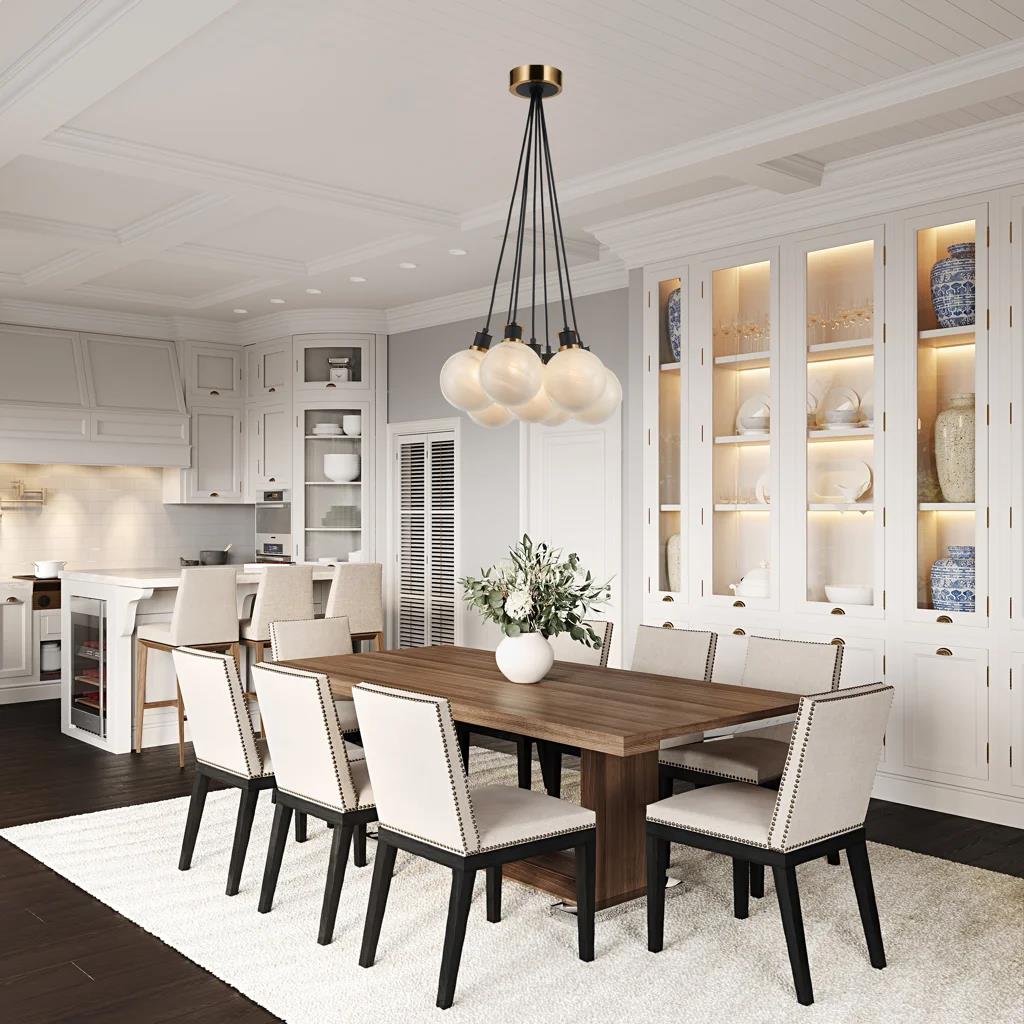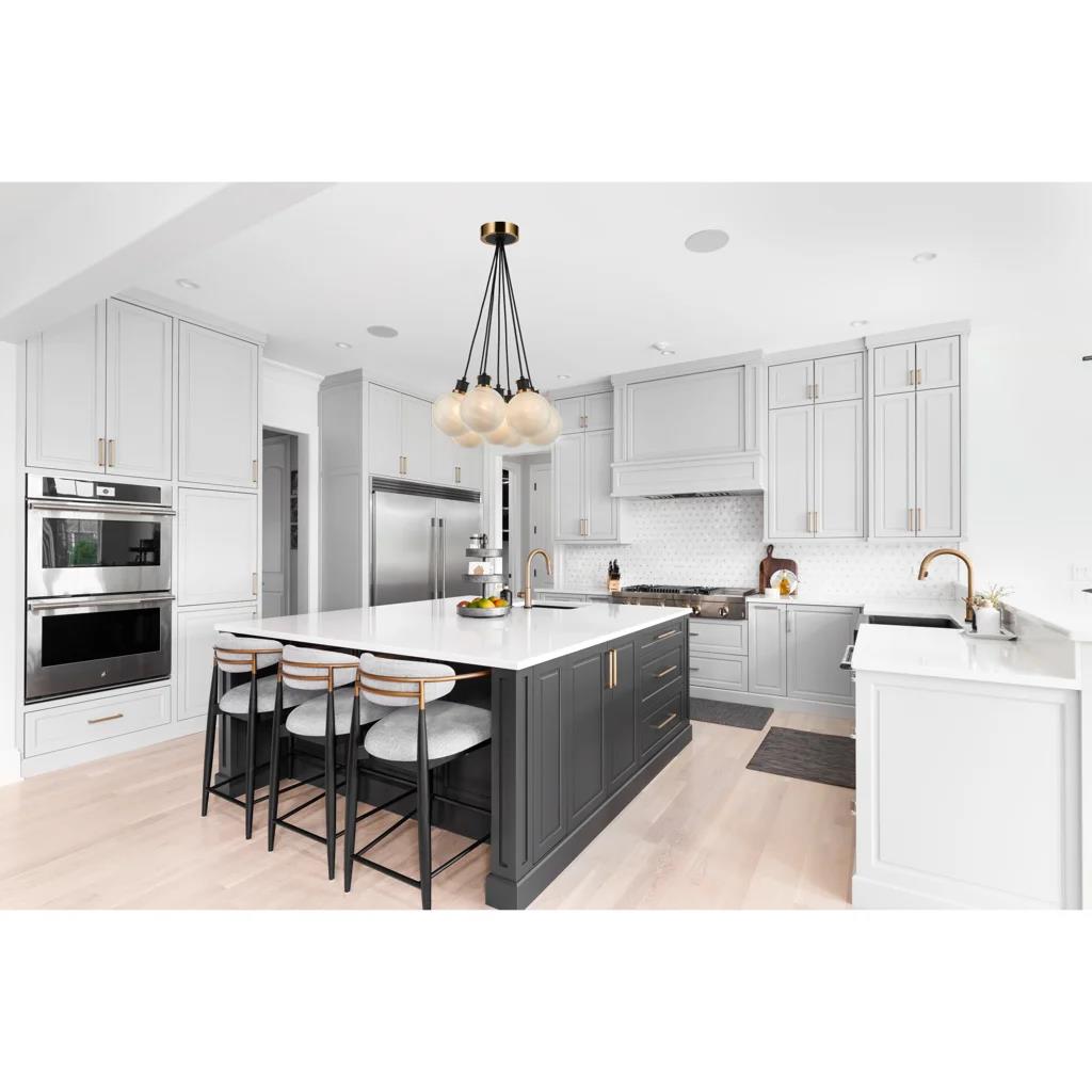 7 x E12 40Watt, Gem Collection 7-Light Pendant Black and Brushed Brass, 18''L x 18''W x 8.2''H