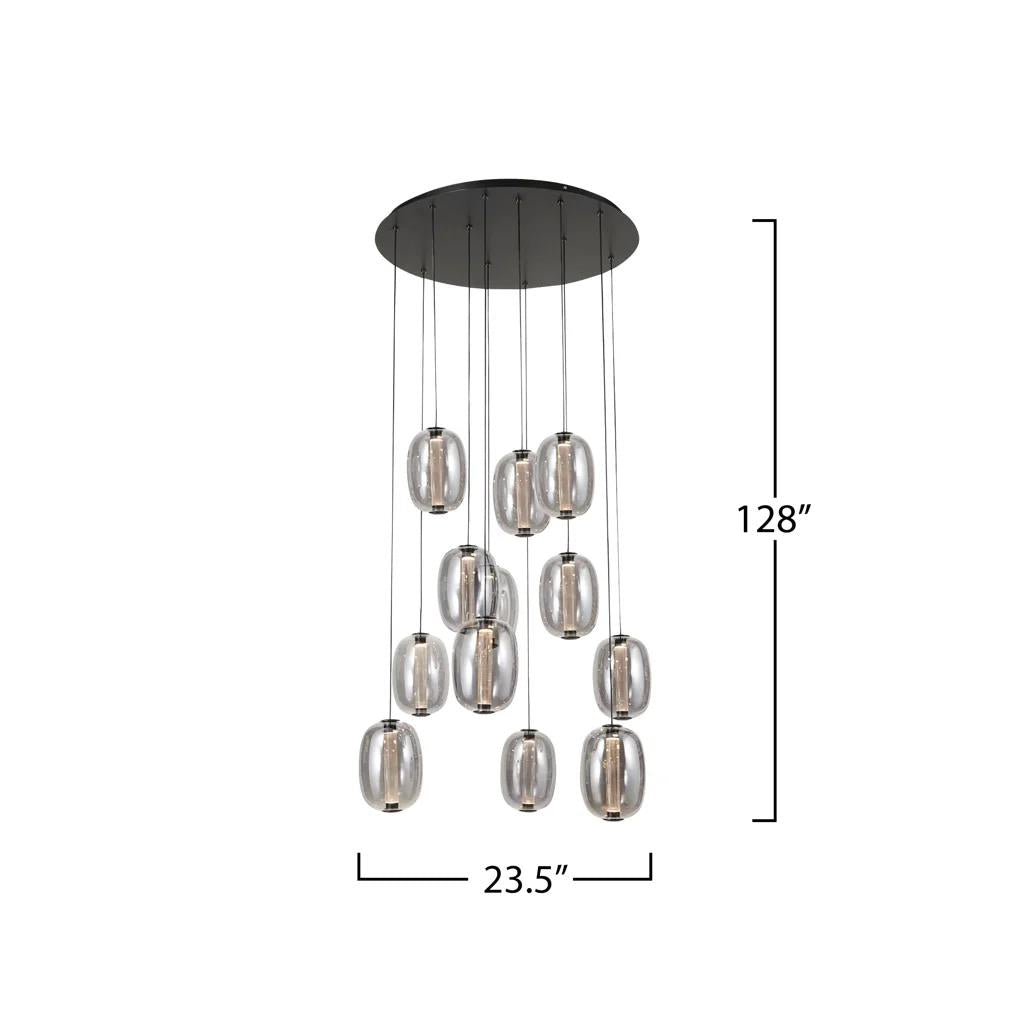 60W Watt Integrated LED - Vega Integrated LED 12 Light Chandelier, Black with Dark Smoke Glassware - 15 Lbs. - Size: W23.5'' x L23.5'' x H128'' - Overall Height: 128'' - Black finish