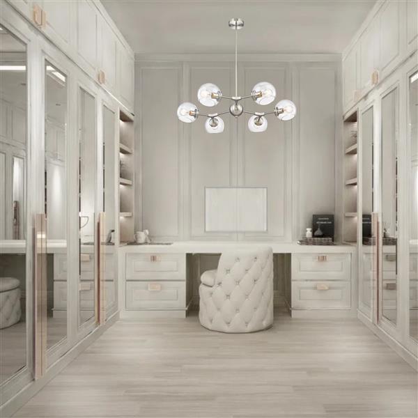 6 x E26 Bulb -Pendant -Brush Nickel /Clr Glass -36"L x 36"W x 12"H - Rod:1 x 6"+3 x12" -Dry area